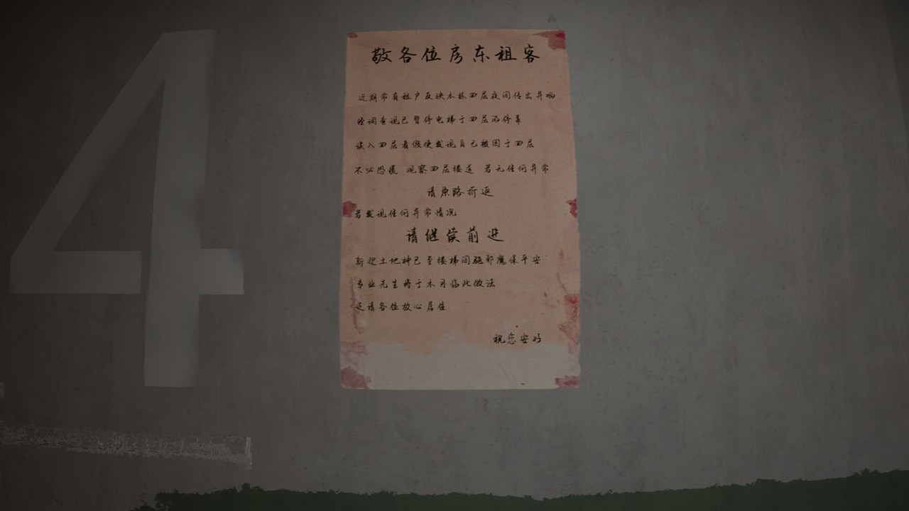 我们会看到被烧毁的402大门,疑似死于火灾。游戏没有字幕、旁白或者解说,所有的剧情都通过这些无限循环的日常物件传达给玩家。