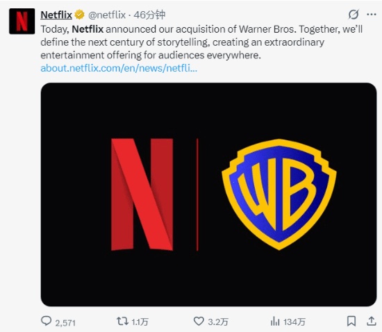 Netflix表示,这笔收购预计将在2026年第三季度完成。收购完成后,华纳兄弟出品的电影仍将继续在传统院线发行。