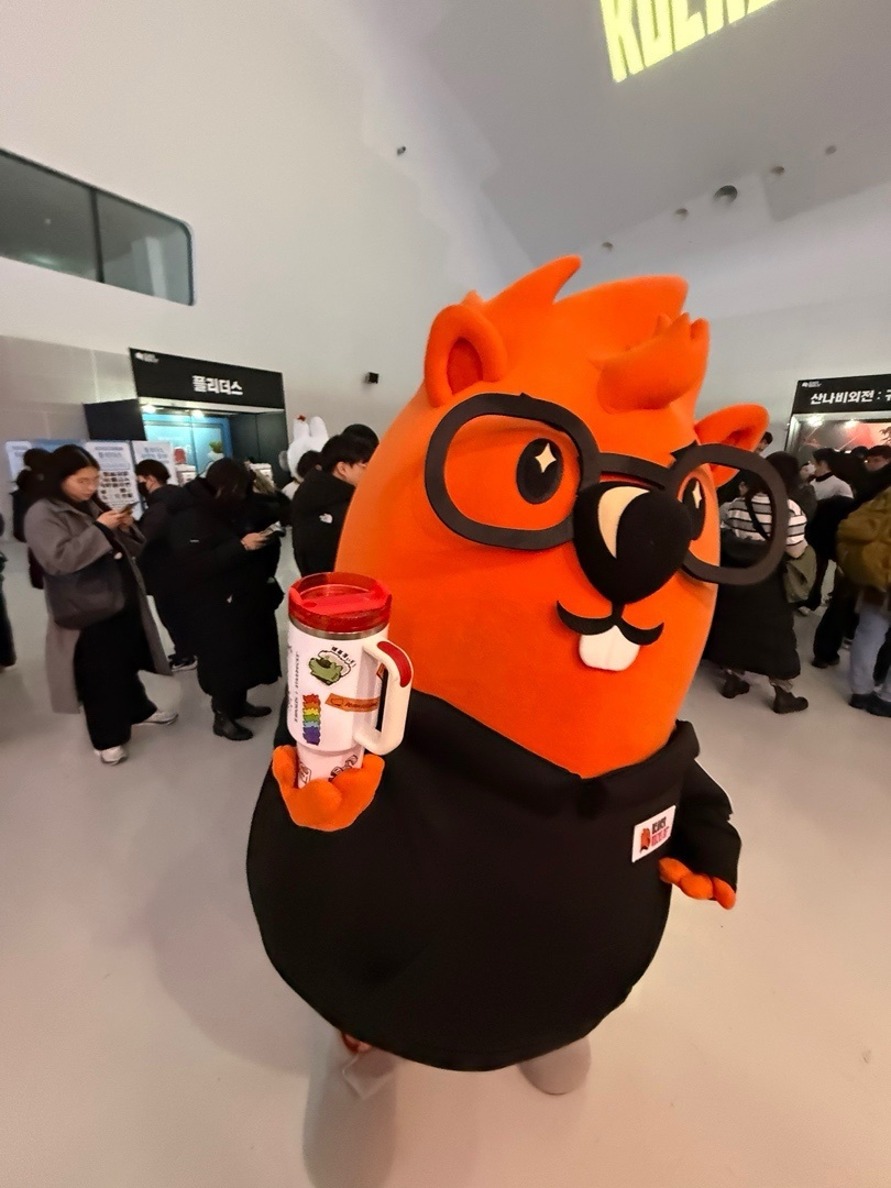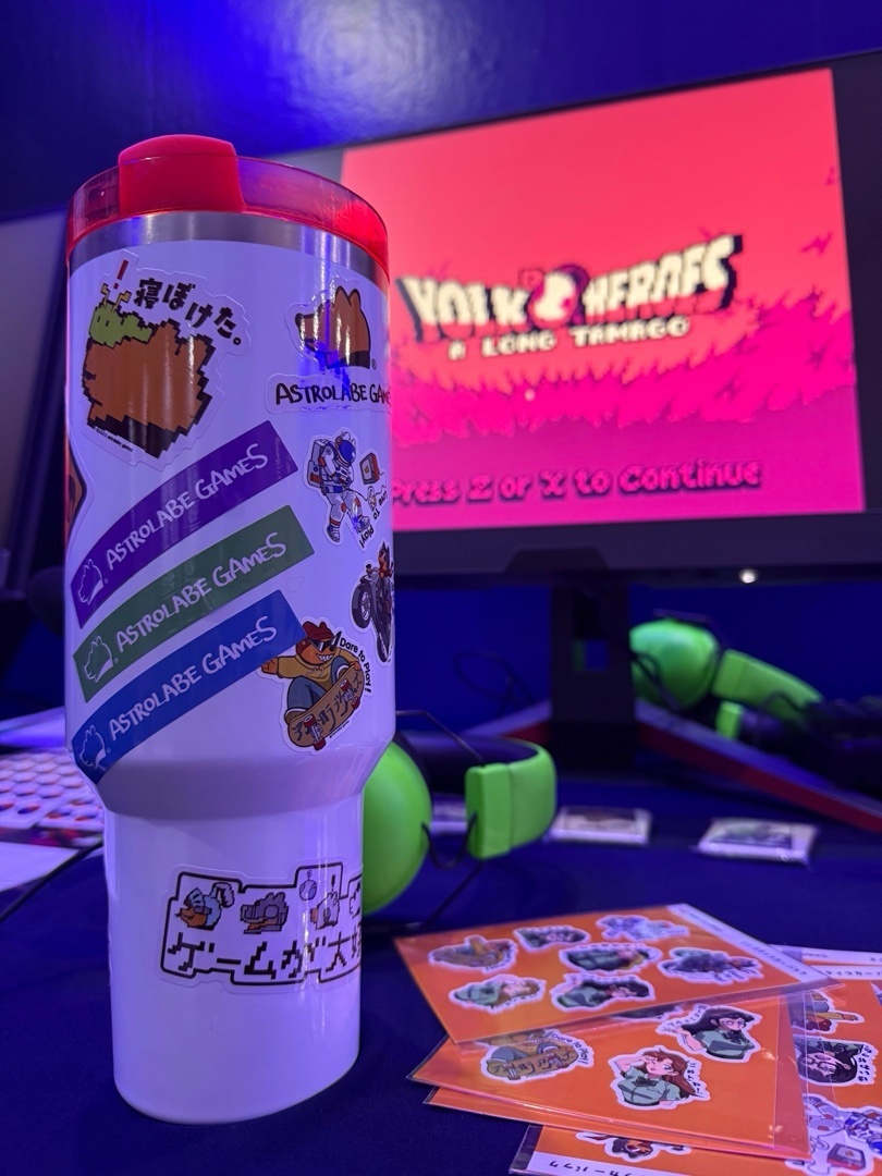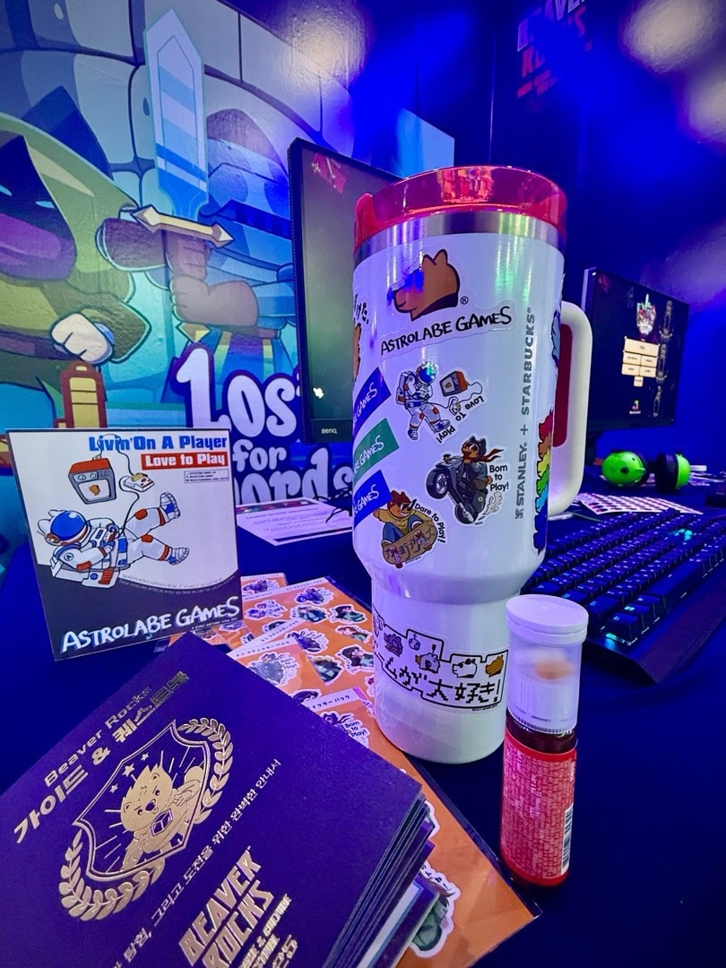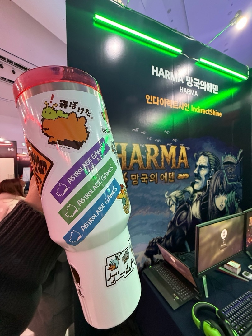 我們正在韓國首爾參加獨立遊戲展會Beaver Rocks,早上剛開場,就有很多人來問我們要貼紙,主要原因是很多人注意到了我們同事手裏的水杯。