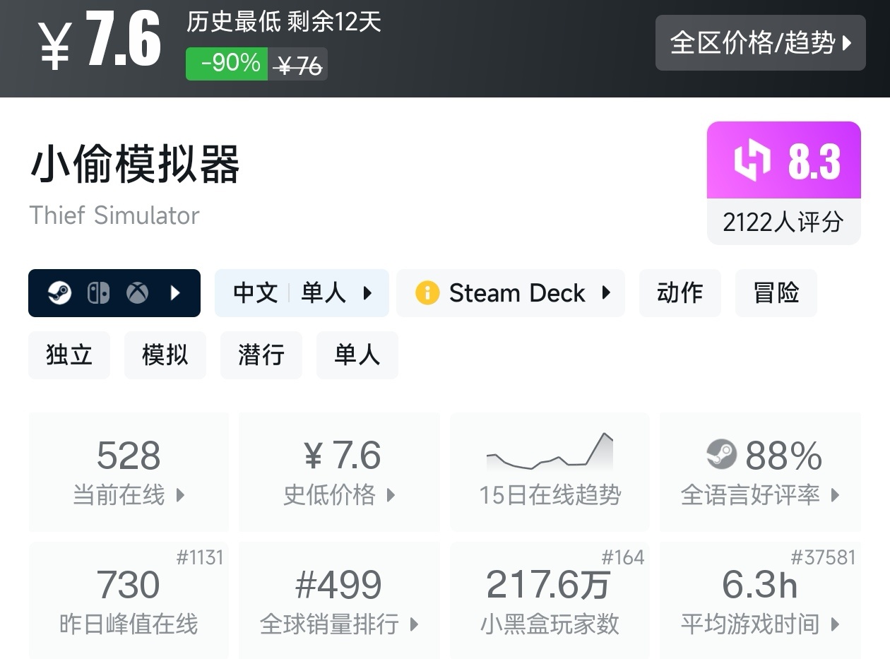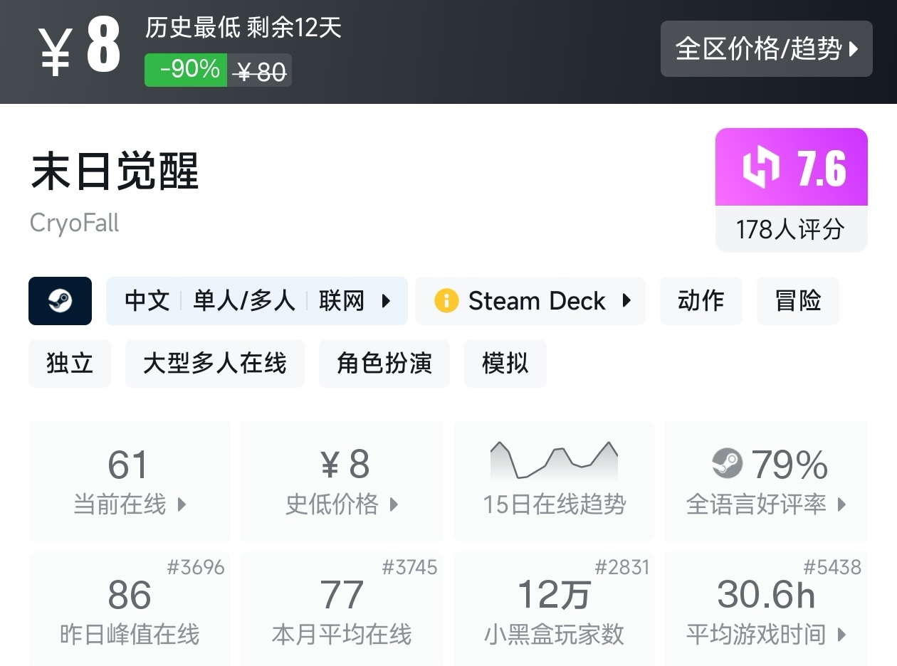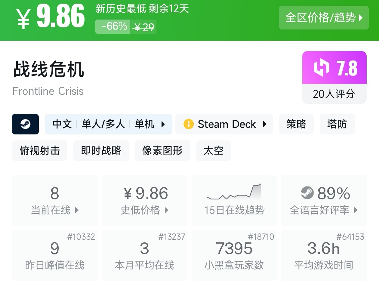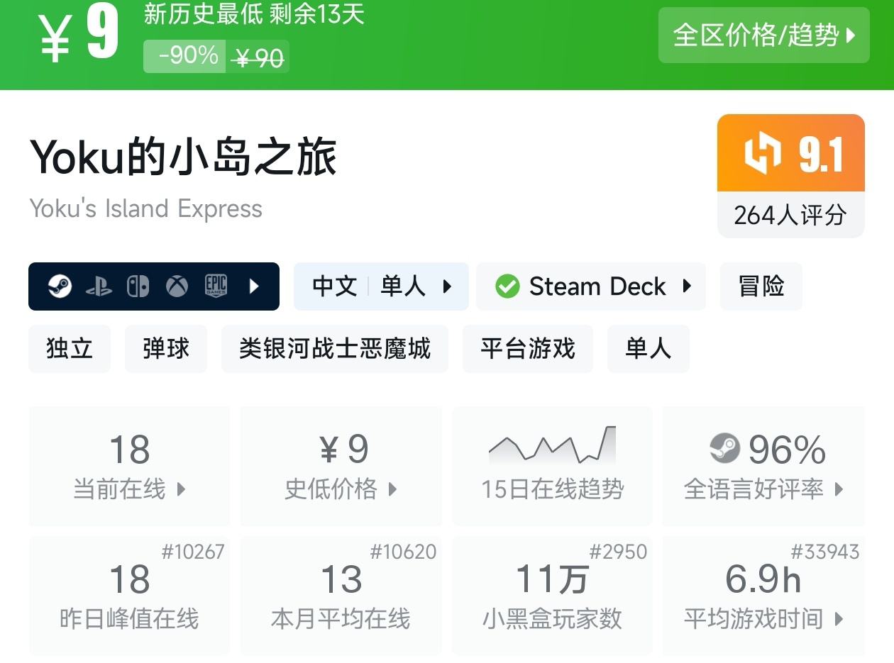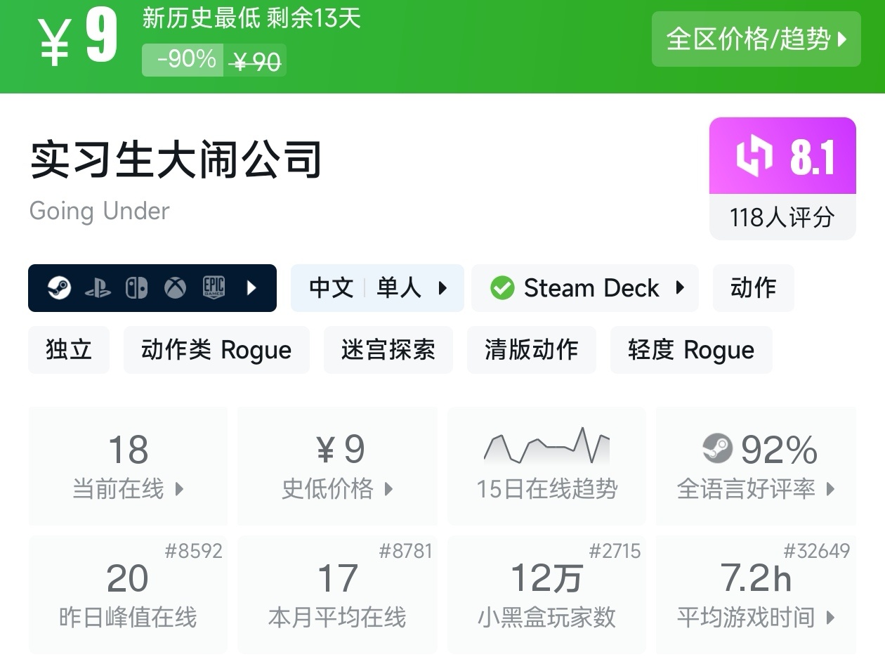 大家好,没错,又是我,你们的老朋友亦然,在最近Steam又有了很多游戏迎来了折扣,当然,现在距离冬促也就不到半个月,并且黑五大促也才结束,所以说现在打折的游戏不算多,不过现在有些游戏价格在10元以下的游戏,好玩不贵,经济实惠,我将为各位进行一个汇总,希望我的汇总,能够帮助各位盒友挑选心仪的游戏。