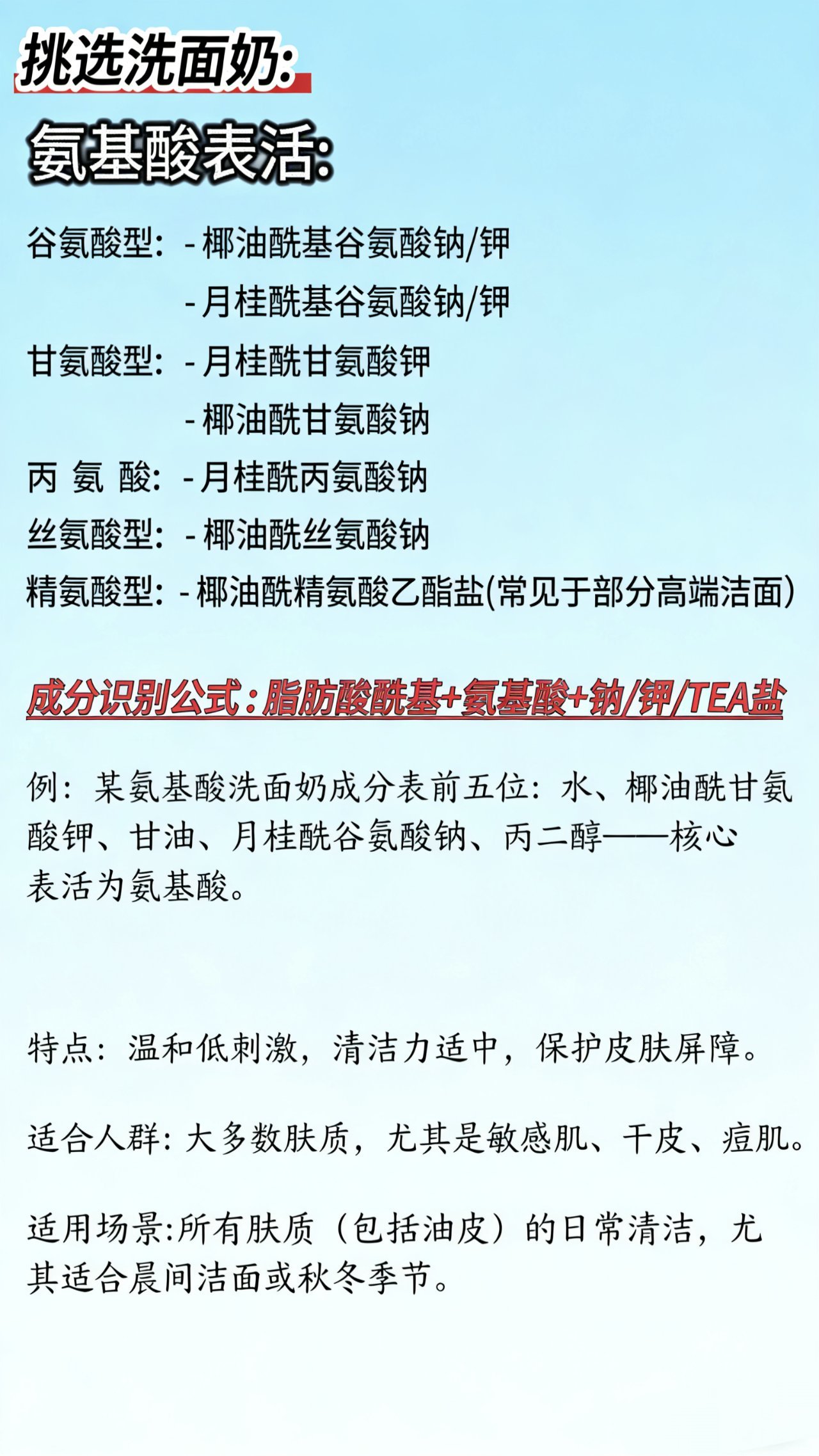 ·进阶选择:氨基酸与皂基的科学复配洁面,在保证温和的同时增强清爽感