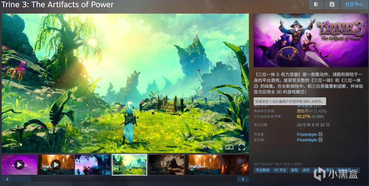《三位一体 3: 权力圣器》是一款集动作、谜题和探险于一身的平台游戏,是获奖无数的《三位一体》和《三位一体 2》的续集。在全新探险中,和三位英雄重新团聚,并体验首次应用全 3D 的游戏模式!