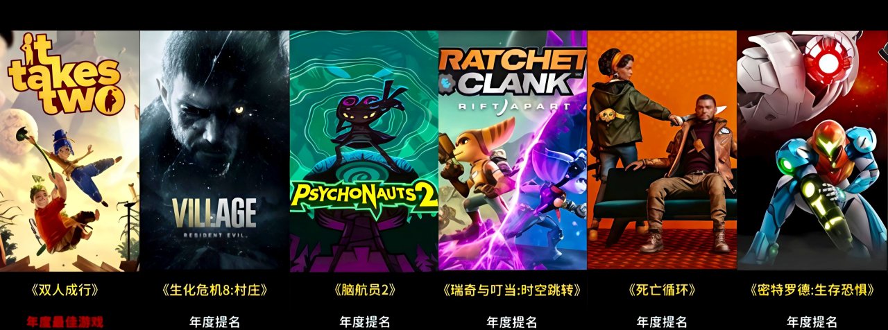 1. 2021年:提名的6款游戏中,仅《死亡循环》《双人成行》2款是新IP。《瑞奇与叮当》《生化危机》等4款均为系列续作,最终新IP《死亡循环》未获奖,年度游戏由《双人成行》夺得。