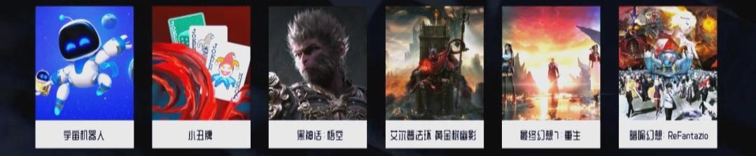 4. 2024年:提名6款游戏,仅《黑神话:悟空》《小丑牌》《暗喻幻想》3款是新IP。另外3款里,《艾尔登法环:黄金树幽影》是DLC,这得益于当年规则调整,DLC也获得了提名资格,《最终幻想7:重生》是重置、《宇宙机器人》则也属于续作。
