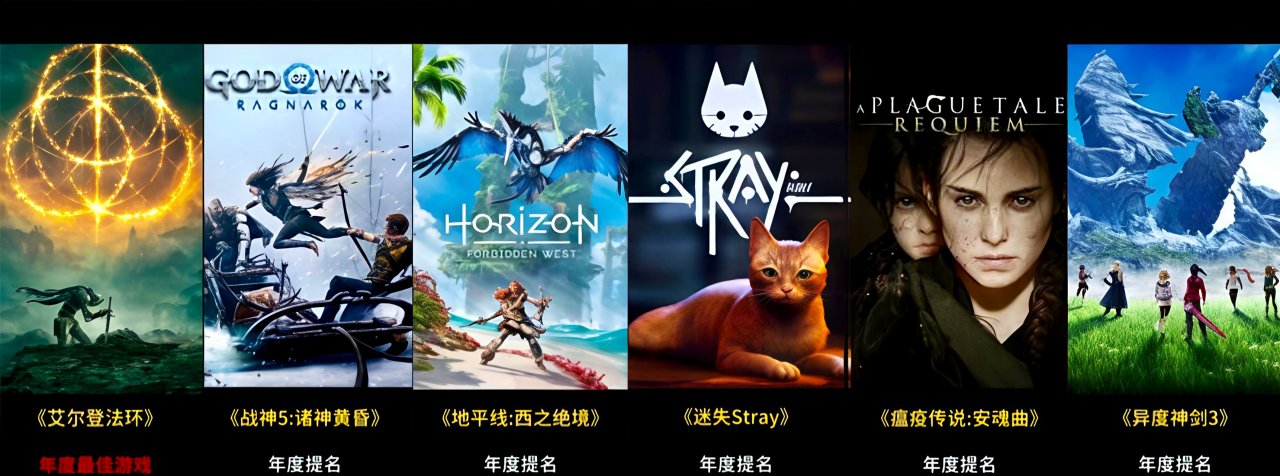 2. 2022年:《艾尔登法环》是FromSoftware打造的全新IP,且拿下年度游戏;其余有4款为知名系列续作。
