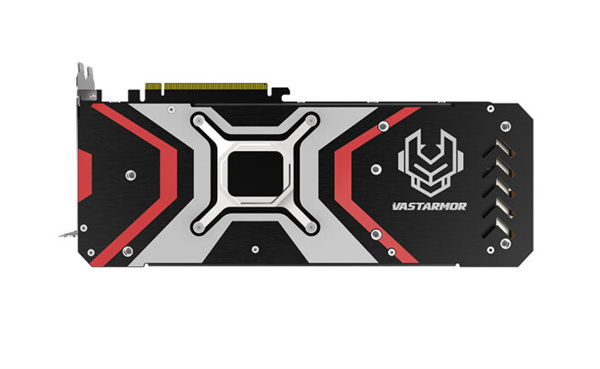 正面是典型三风扇,支持智能启停,搭配红黄蓝多彩RGB信仰灯,内部由六根纯铜镀镍热管、密集鳍片组成,后方则是强化金属背板,双8针辅助供电。