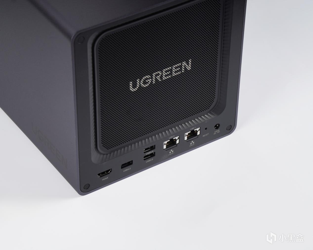 至于接口方面,绿联DXP4800 Plus背部配备了2个USB2.0的接口以及1个USB3.2Gen1的接口,同时配备了1个HDMI接口,其支持的视频规格最高为4K@60Hz,以及双网口接口,其中1个为10GbE,另外一个则为2.5GbE,在网速比较好的情况下实际使用两者不会造成使用瓶颈(即使是作为映射盘挂载),整体接口群还是比较丰富的