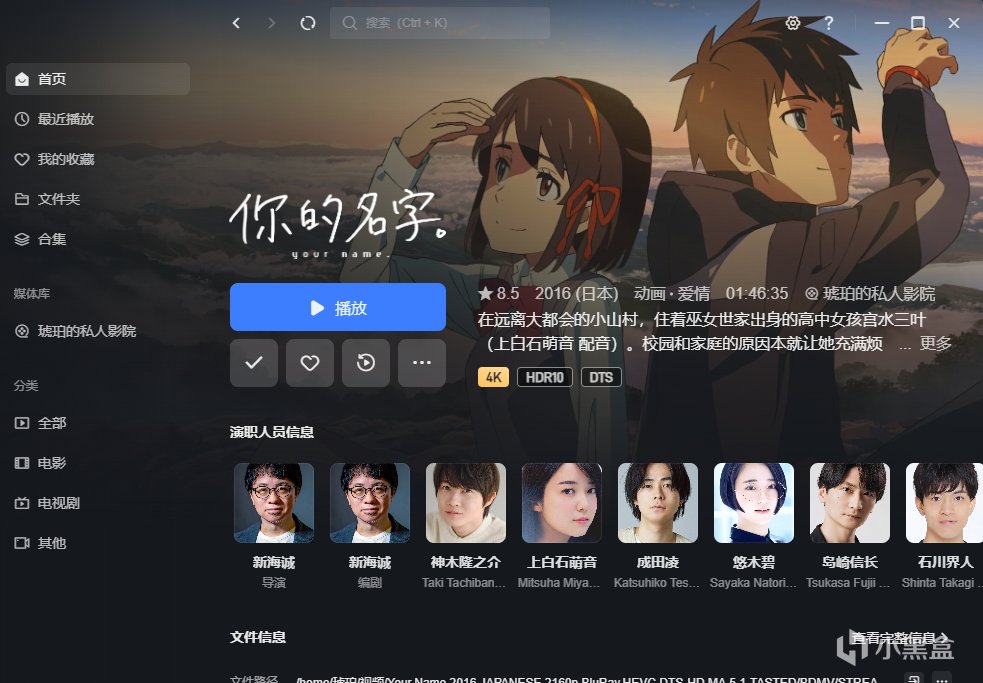 同时其应用市场中有提供进阶软件——影视中心,其本身是可以通过TMDB以及智能识别双刮削源进行识别影视信息并且自动生成标签以及合集的,可以生成专属的海报墙,实话实说,这也是我主要选择它而不是其他家NAS的一个主要原因,毕竟只是几年大会员+某度网盘的钱就可以直接获得自己的专属影院,不会出现突然消失以及奇怪的修改还是非常值的,并且其同时可以进行多成员分类,配合下载中心可以打造出专属于不同成员的家庭影院