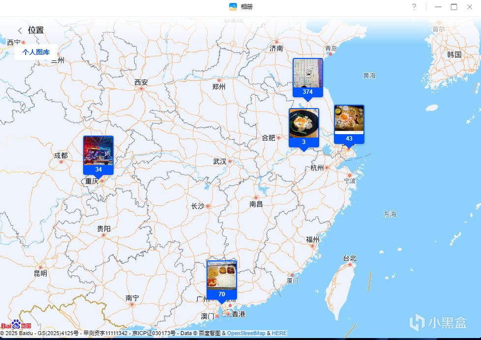 所以其也配有AI功能,会将备份的照片按照人物地点等特点智能分类,后续可以通过点击地图上的区域来选择对应的照片,这点还是很方便的,地图本身支持放大缩小,所以可以精确到准确的地点