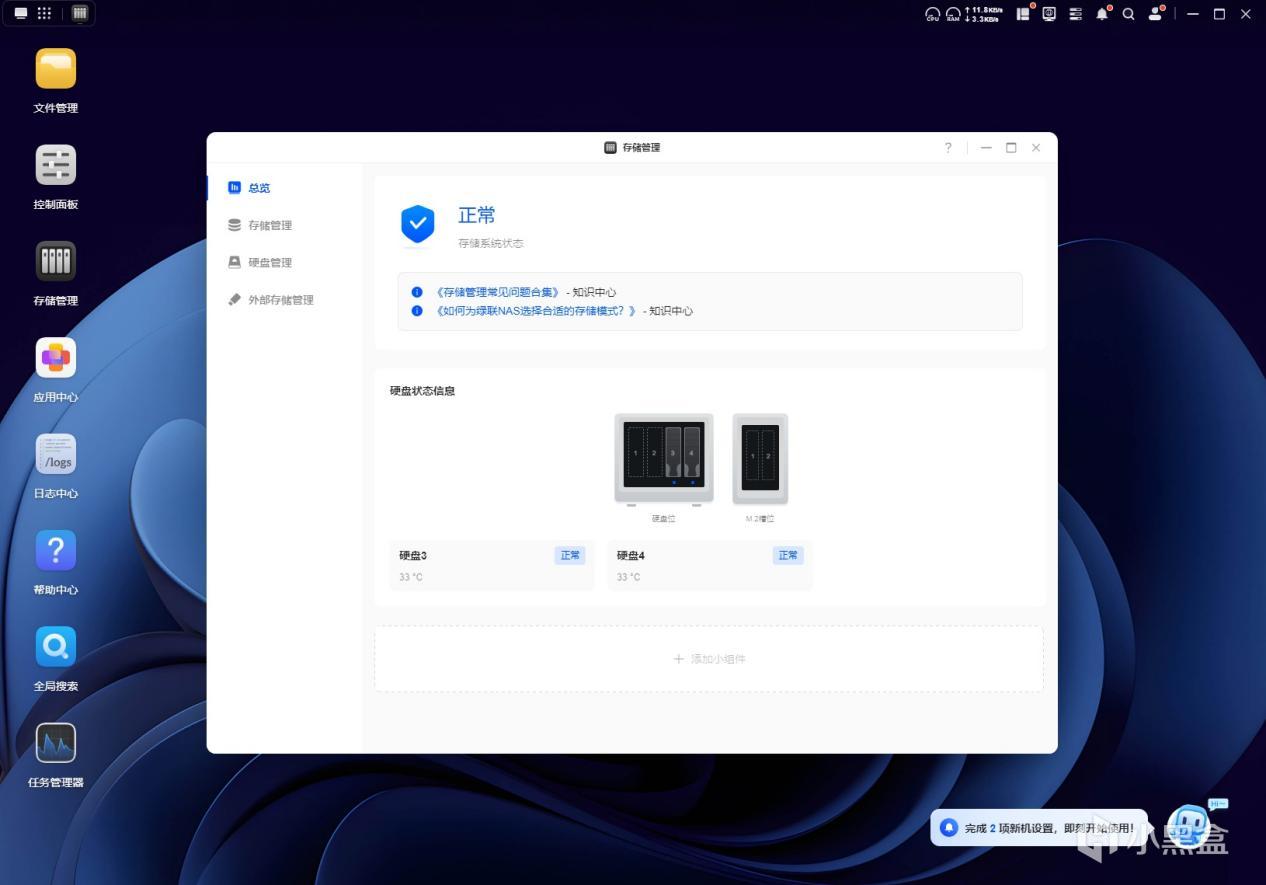 正规军比较好的一点就是,其在使用时有着非常详细的新手教程,而在之前自行组装的时候,基本只能靠论坛的教程来摸索,黑群辉还经常出现各种BUG,头大的很,而迷你机转NAS也不是好整的,不同主板批次下的同一个型号,可以刷入的系统有的时候也会有差异,让人头大的很,而绿联的NAS是有着自己的系统的,4800Plus使用的是UGOS Pro,其在初次绑定之后,系统会进行一个简单的初始化