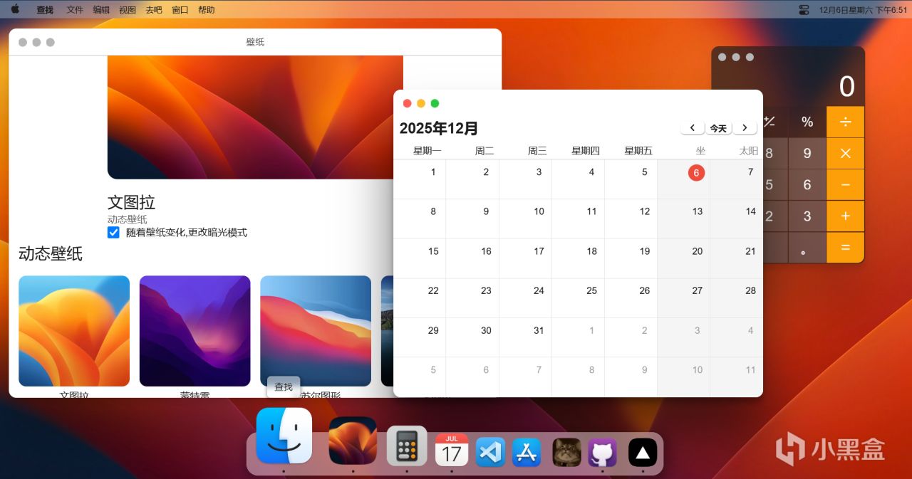 Finder、桌面、应用栏一应俱全