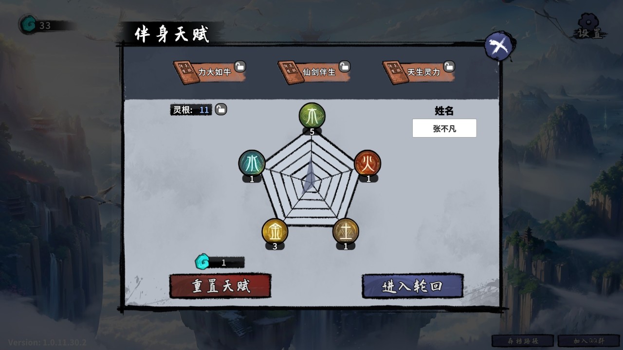 悟性相關的天賦是其次重要的,悟性決定着我們在遊戲裏的修煉速度,在更短的時間裏達到高等級就更益於我們的成長。大家在後期的時候等到輪迴點數多了以後可以把悟性點到大概30,其餘點一些靈根以及攻擊,速度,體魄加成,其餘的我建議都點修煉品級,這個關係出金色修煉事件的概率。