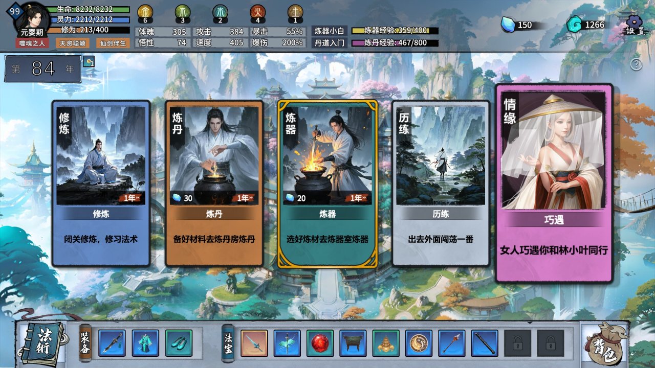 具體的流程我就不過多劇透了,遊戲的劇情分爲兩條線,正道靈劍宗以及魔道逆天宗。大部分事件其實都是給我們加點屬性,且是固定的。前期體魄或者速度我們可以適當提高一點,林小葉的好感度事件就需要3點體魄或6點速度觸發,運氣好我們還會遇到隨機性高一點的奇遇事件,也是需要我們的一些屬性到一定程度觸發。林小葉這條線還是建議大家前期關注一下的,我覺得還挺純愛的,甚至還能和師姐開後宮線。