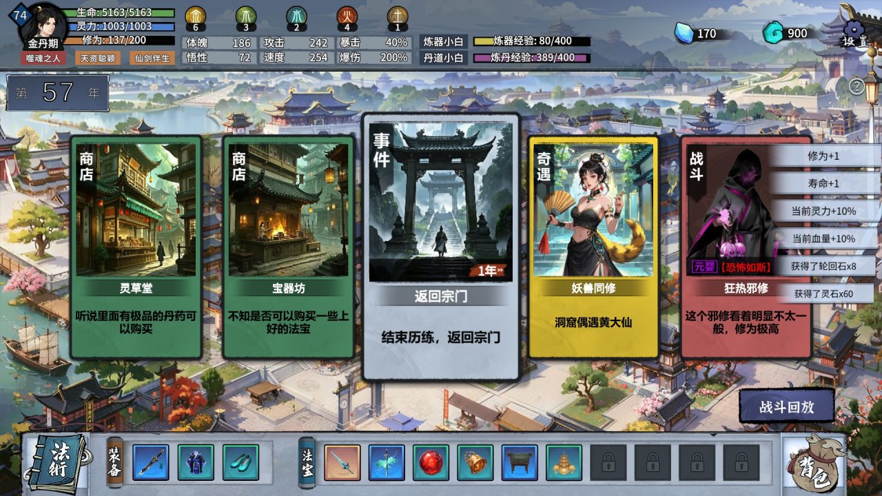 早期demo版本是沒有這個機制的,並且在金色事件的加持下,不論是修煉,煉丹還是煉器都會成倍提高效率,特別是修煉。在修煉,煉器,煉丹三個金色事件裏,修煉是重中之重,如果是二選一那一定要選修煉,靈石這個東西其實流程裏並不缺,大不了就砸錢買,我就是這樣的。