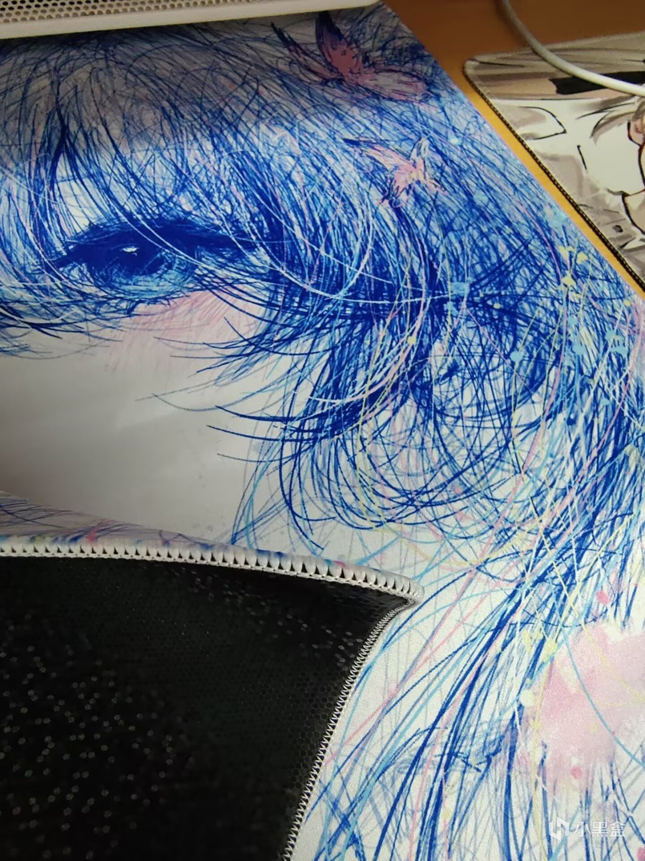 可以看到表面的二次元线稿是十分的好看,先锁后印的工艺使得图案呈现的很完整,更加的美观,给我的桌面锦上添花。同时底胶还是采用了中高端的聚氨酯星闪底胶,整体厚度为4mm,软弹性强的同时还有稳稳的厚实感。底部防滑性也十分出色,放在桌面上操作不管多么激烈也不会发生位移。