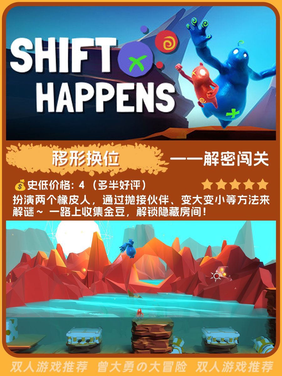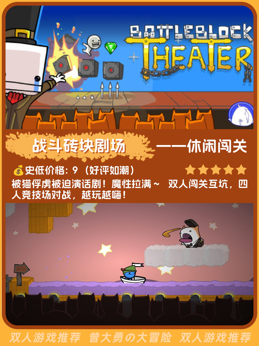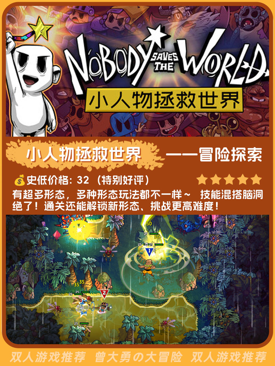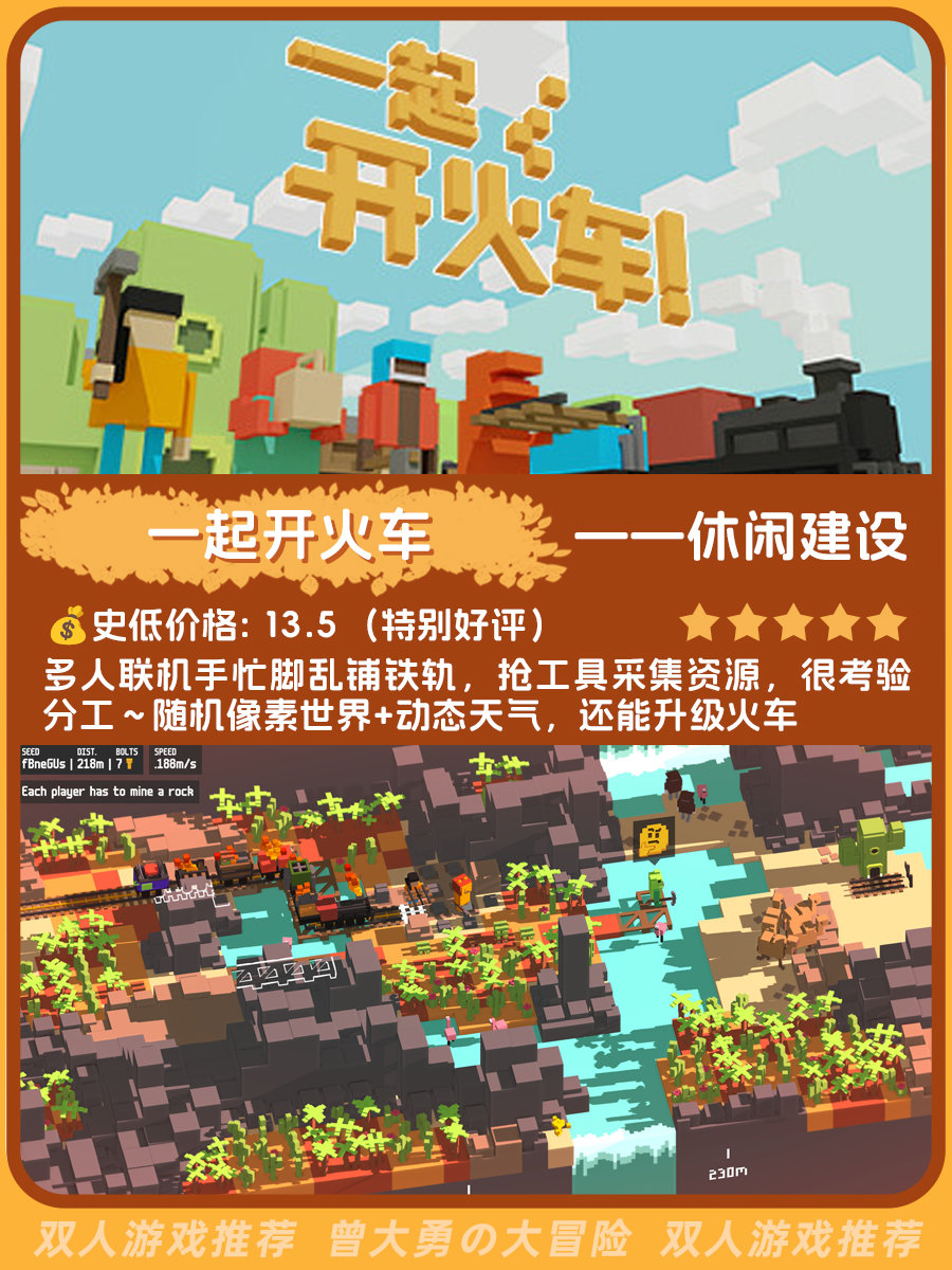 又整理了一份偏小众但不错的双人游戏推荐,包含史低价格、玩家评价、游戏简介和类型,目前有十二款,后面会持续更新