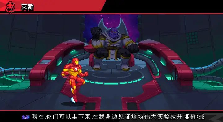 先说说《漫威宇宙入侵》玩法,如果有玩过他们的前作《忍者神龟:施莱德的复仇》就会比较熟悉,核心是一款复古形式横版闯关游戏,每名玩家可以同时选择两名超级英雄,去解决宇宙中爆发的危机。