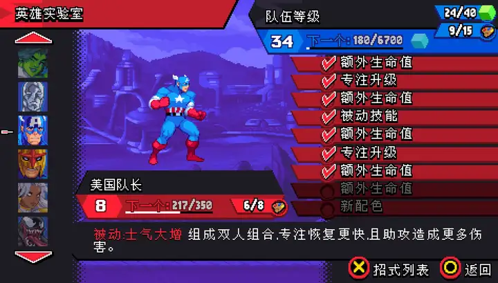 战役模式整体难度感觉还好,不少关卡是可以一次就能通关,通关或者未通关,都会给选择的超级英雄经验条,带来一些血量提高等属性成长。事实上每个关卡一般一两次都能通关。