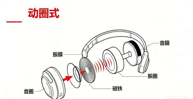 ①动圈式:利用电磁感应原理,磁场中的线圈振动带动振膜发声。结构成熟稳定、生产成本低,是目前市场上 90% 以上机型的选择,低频表现饱满有力,适合听流行乐、摇滚乐等风格,但大尺寸单元的瞬态响应较弱,高频细节解析稍显局限。