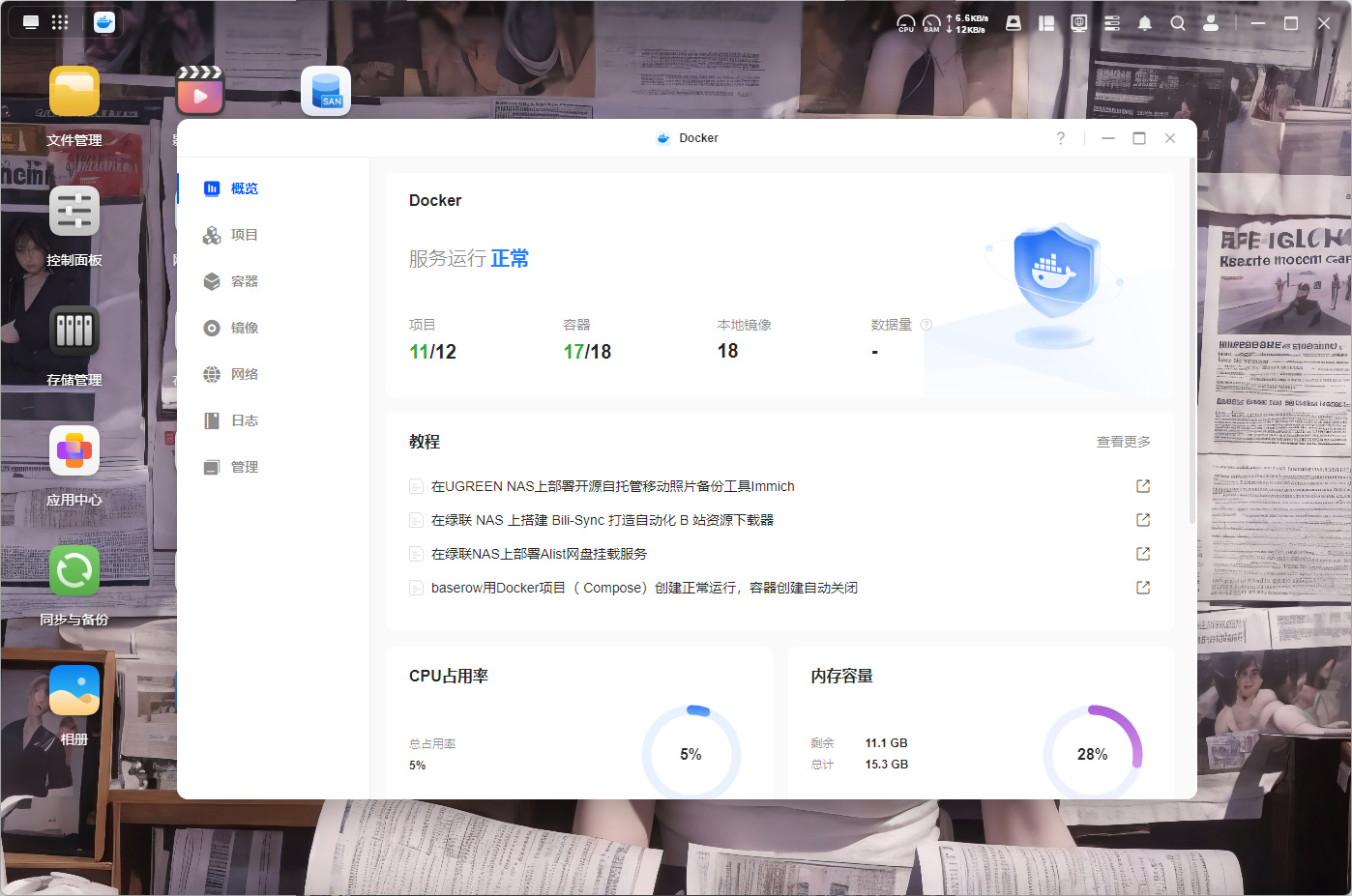 NAS在如今不止是作为存储设备使用,很多时候也是家庭或个人的小型服务器,用Docker部署各种项目来实现扩展性的功能。而绿联的Docker不论是界面UI设计还是镜像和容器的管理以及多端操作上都算得上目前NAS梯队里数一数二的存在。