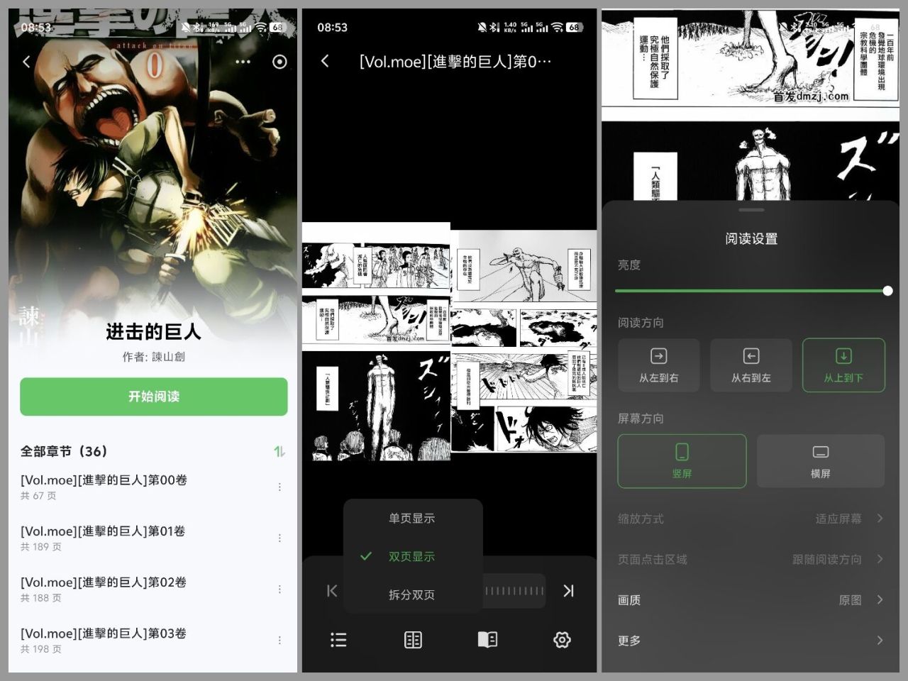 点开漫画章节的排序也是正常的,在阅读漫画时支持双页和单页展示,同时也能在设置中调节阅读方式,例如一些韩漫就非常适合从上往下的阅读方式,可以根据漫画的属性自行调整。