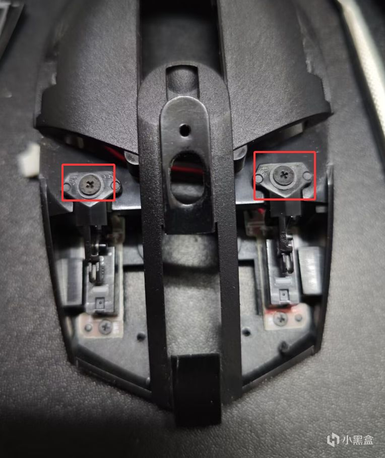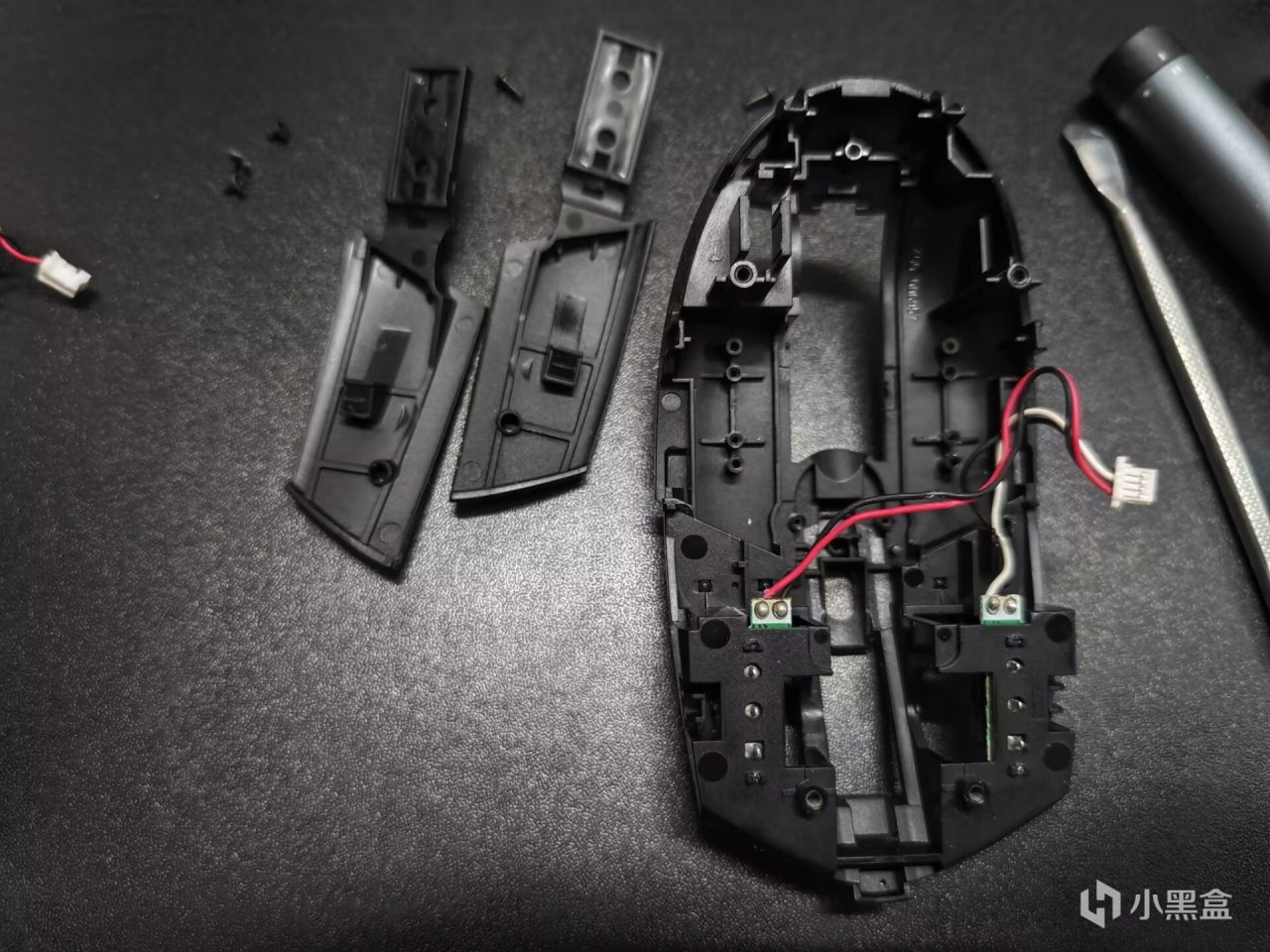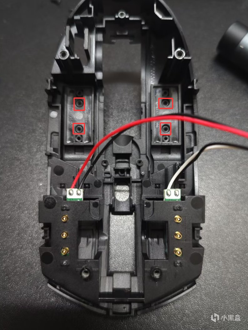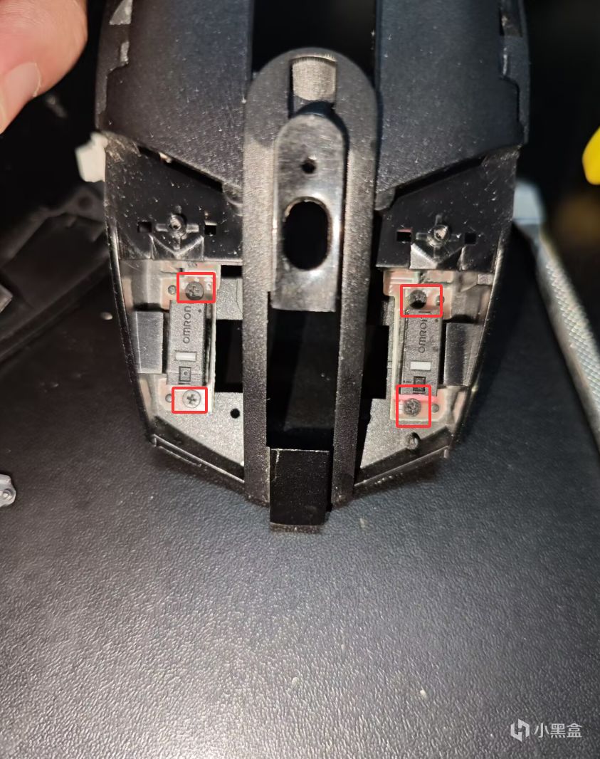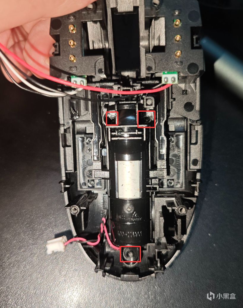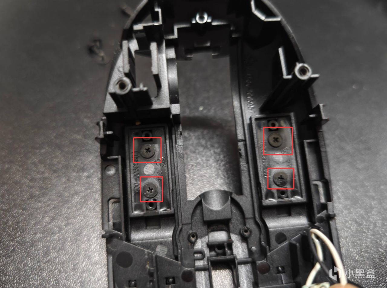 然后再取下方框中的4颗螺丝,便可撬开微动板