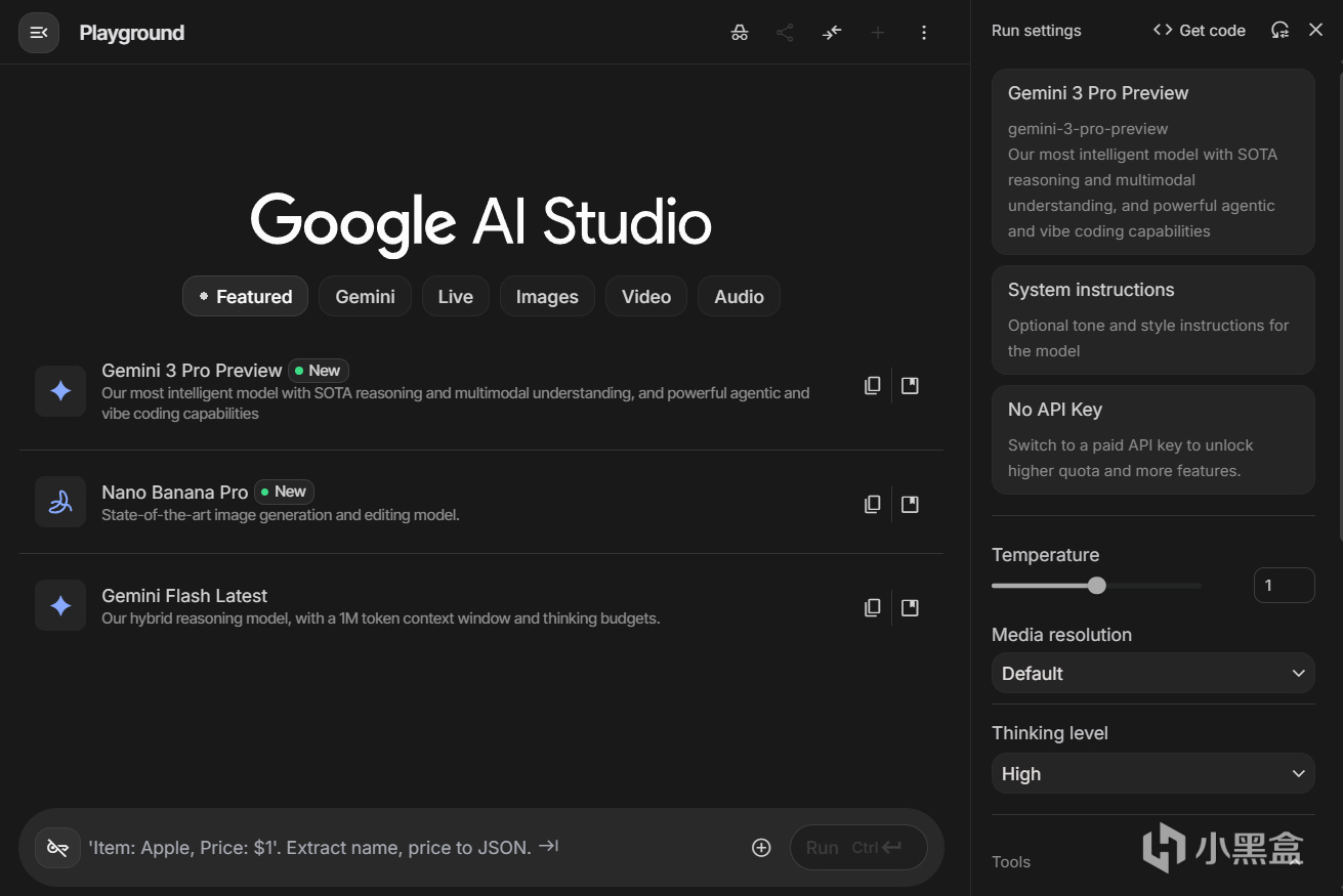 第一种方式是直接访问谷歌的ai studio,在网页里面直接用,而且还能使用Gemini 3.0 Pro