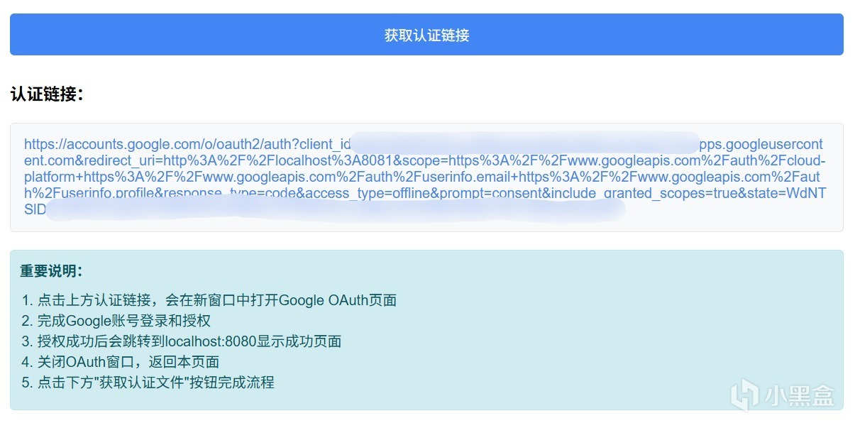 进入管理面板之后,点击那个大大的“获取认证链接”,然后回出现一个很长的链接,点进去登录,然后一路下一步。