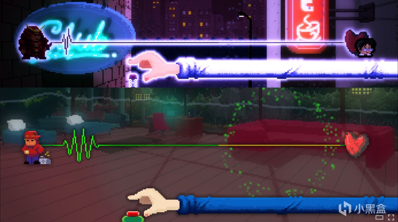 ●只需要一个按键来游玩,但难度颇高。不过,别担心,对节奏不敏感的玩家,也可以可以调整游戏难度,在“按了就中”模式下安心体验剧情。