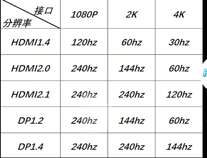 建议大家选择DP1.4或者HDMI2.1的连接线设备的分辨率和刷新率比较全面,最高支持4K144赫兹和2K240赫兹,