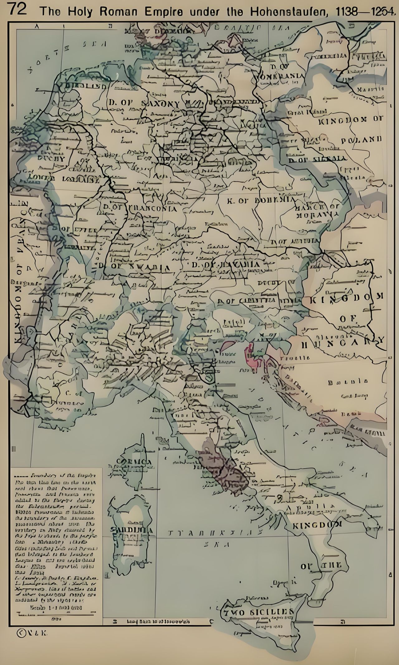 他的統治,是一曲鐵與血的奏鳴。他與教皇角力,與城邦周旋,試圖將皇帝的名義化爲至高無上的權柄。在他的時代,神聖羅馬帝國的國勢如雄鷹展翅,攀升至中世紀的頂峯,令四方諸侯屏息,讓整個歐洲側目。“紅鬍子”腓特烈,一位用野心與實力,在歷史的星空中刻下自己熾烈印記的帝王。