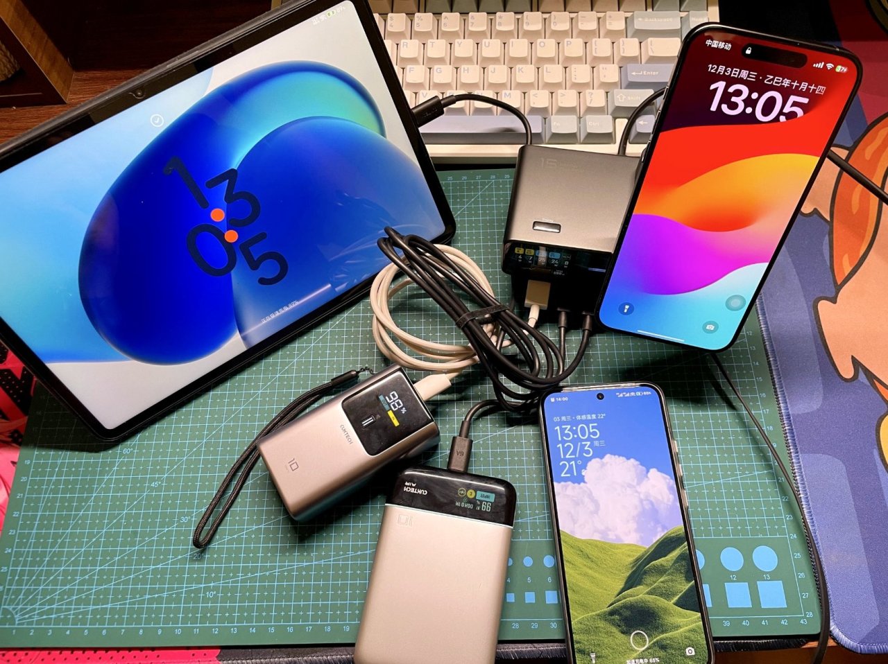 同时开启“C1(手机)+C2(平板)+C3(充电宝)M1(手机)+A1(充电宝)”,总功率峰值124W。