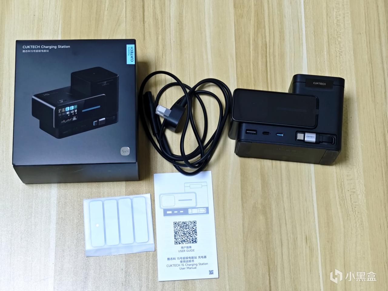 作为新时代的赛博囤囤鼠,今天来体验一下号称是多设备桌充的又一解决方案的酷态科15号超级电能站。首先老环节,包装内含:充电宝本体*1、8字AC电源线*1、纳米粘合固定脚贴*2次、说明书。