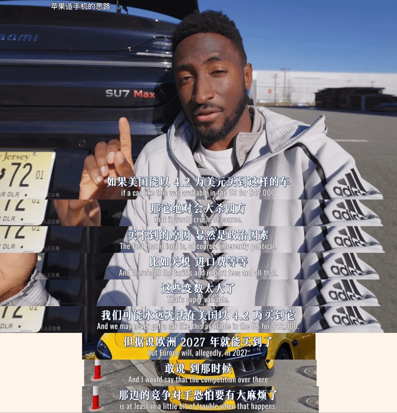其纸面数据足以与特斯拉Model 3高性能版媲美,但后者在美国市场的售价为5.5万美元。MKBHD还赞扬了小米SU7的设计自由度,认为作为科技公司出身的小米没有传统汽车制造商的历史包袱,能够融合多种豪华车型的设计元素,创造出协调大气的整体外观。MKBHD提醒欧洲车企,小米SU7计划于2027年进入欧洲市场,届时可能会给当地品牌带来严峻挑战。