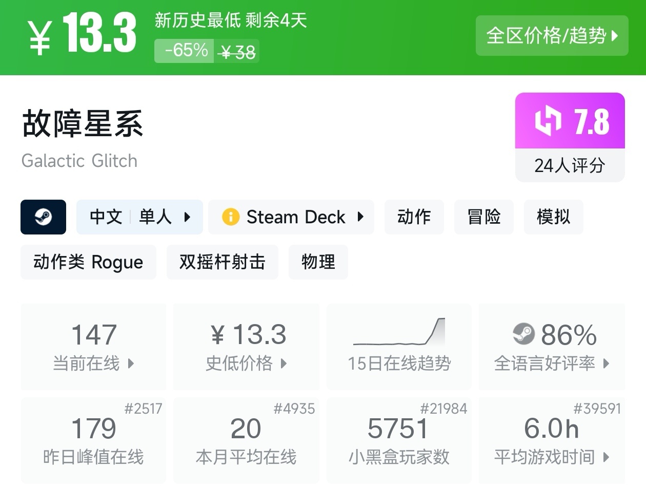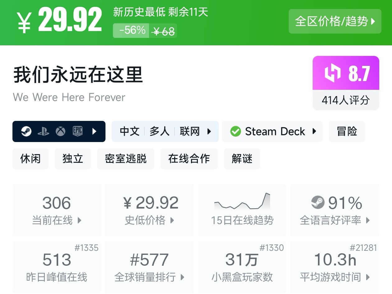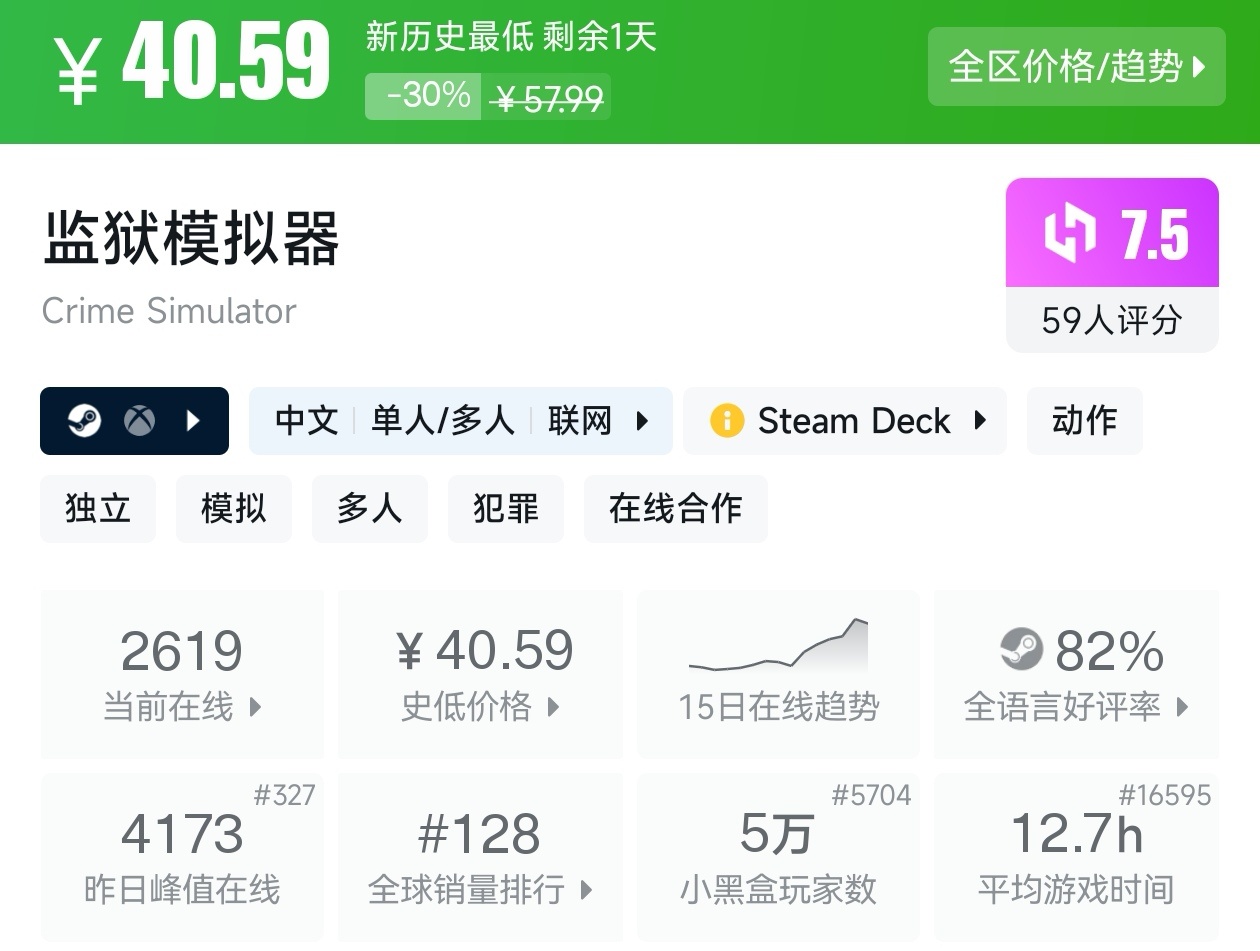 大家好,没错,又是我,你们的老朋友亦然,在最近,马上就到冬促了,冬促即将于北京时间12月19日举行,有很多大作都将在那个时候迎来折扣,不过最近也有很多新史低游戏,其实新史低游戏买起来最有安全感,因为在很长一段时间游戏都不会更低,我将为各位进行一个汇总,希望我的汇总,能够帮助各位盒友挑选心仪的游戏。
