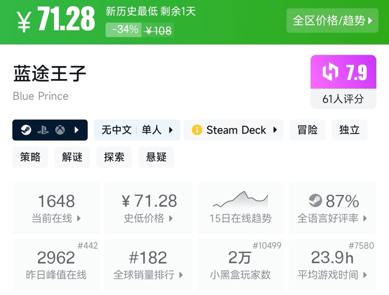 以上就是这期的折扣汇总,几乎涵盖了近期所有的新史低游戏,足足用了我一个小时。