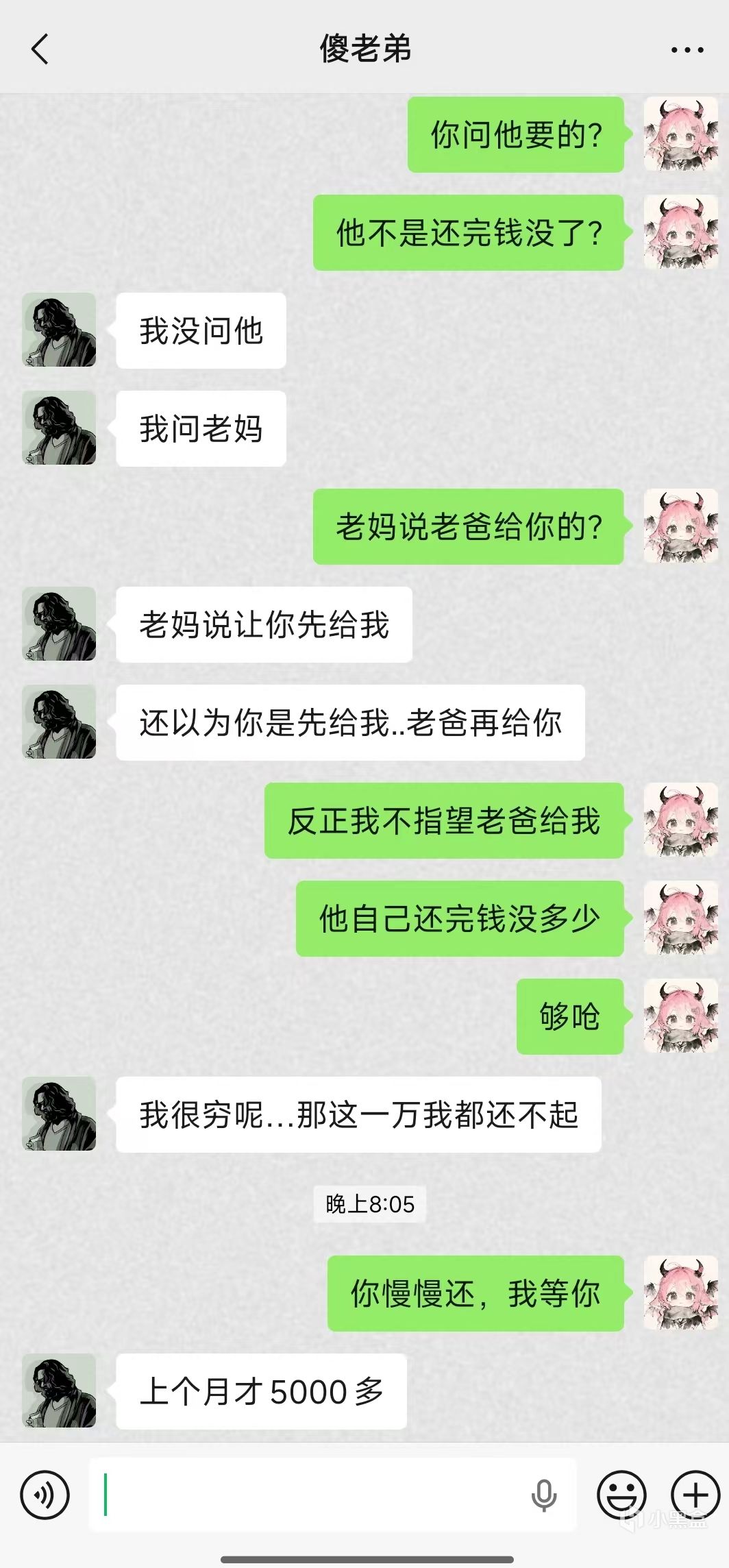 之前给他一万,他以为是老爸让我给的,后面老爸会还我,怪不得从来不提。
