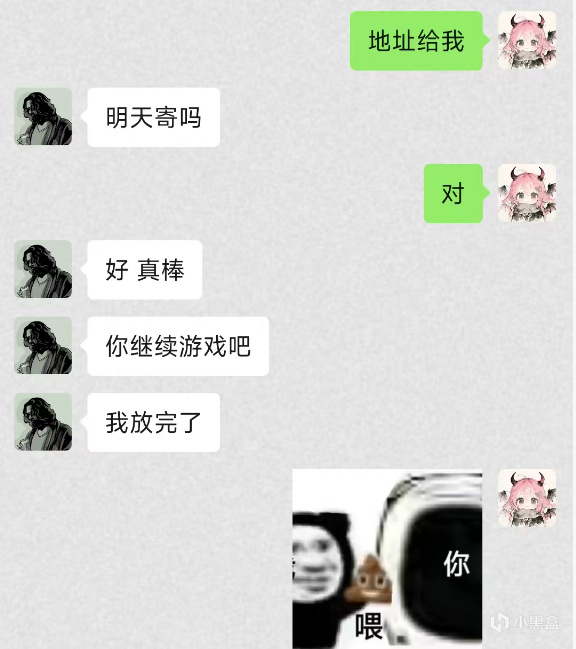 发了地址给我工作机,明天给他对象寄衣服,希望他这次这个能靠谱点。