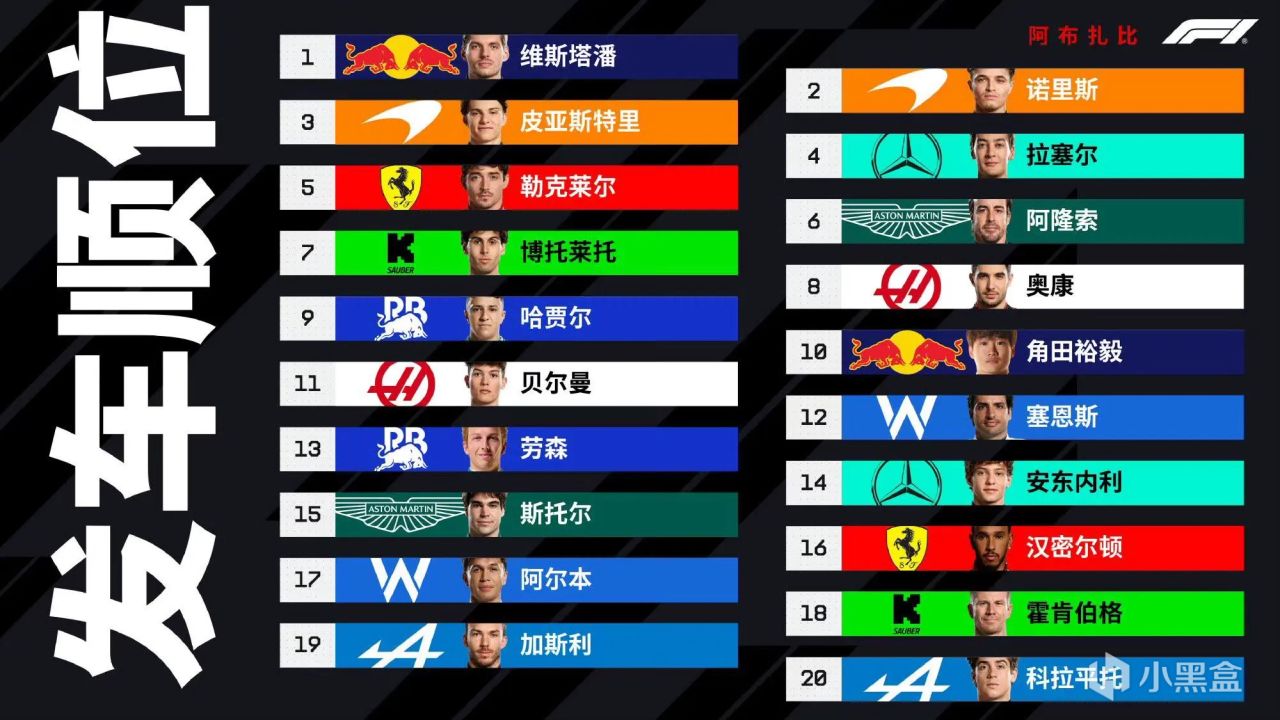 正赛发车顺位如下