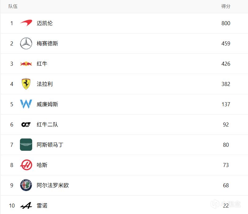 对车队来说已经没有悬念,迈凯伦稳居榜首