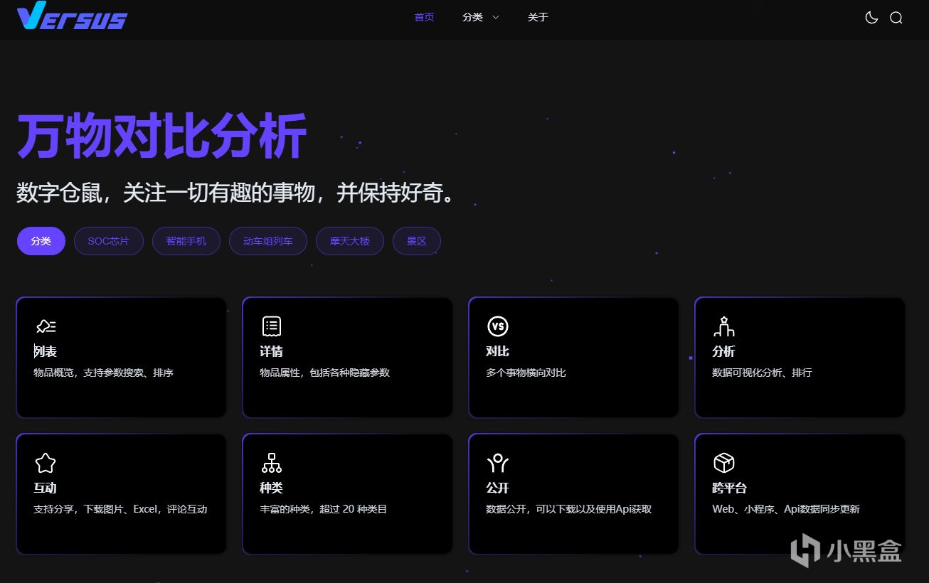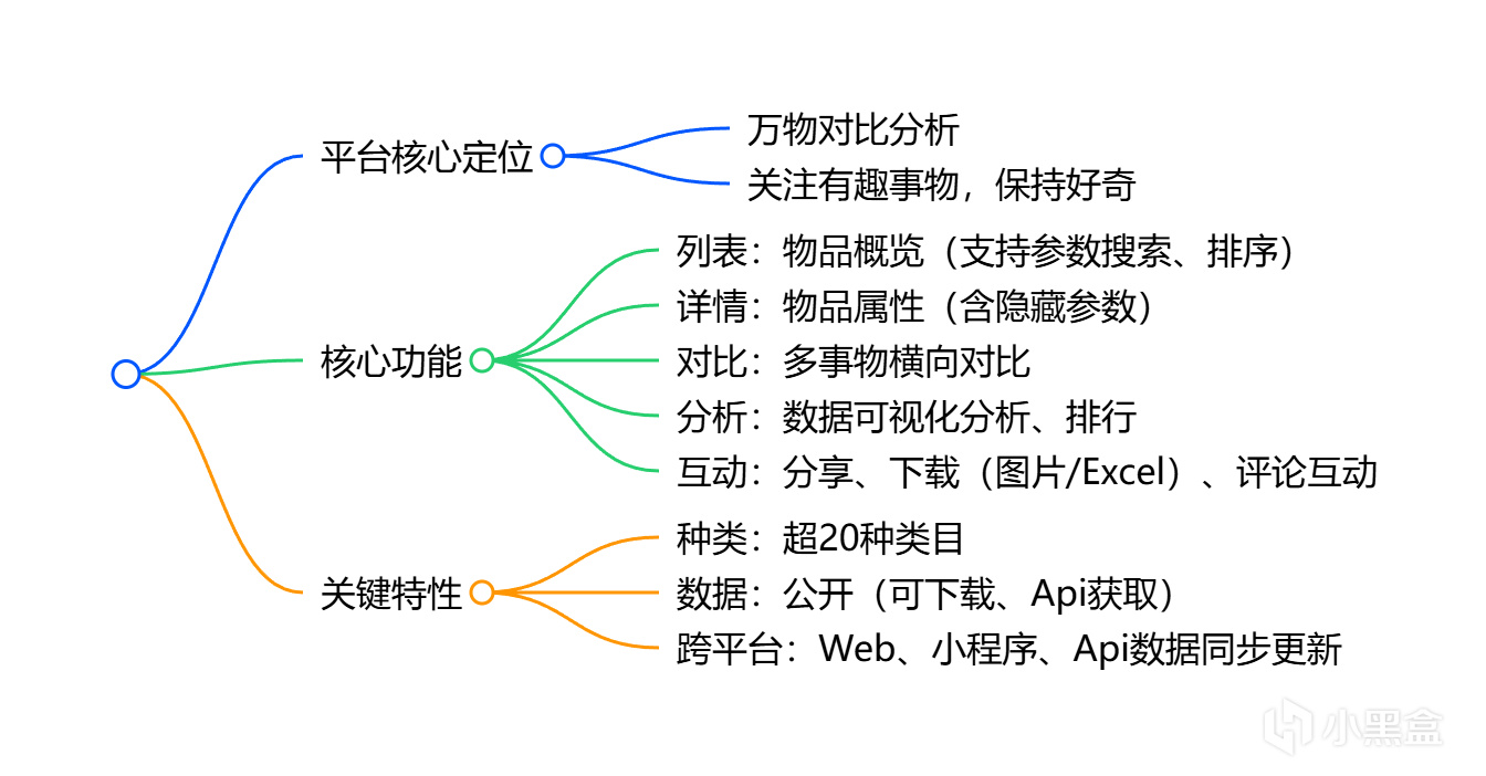 專注於萬物對比分析的平臺,核心圍繞物品的概覽查詢、屬性詳情查看、多事物橫向對比及數據可視化分析排行,支持分享、圖片 / Excel 下載、評論互動等功能,涵蓋超過 20 種類目