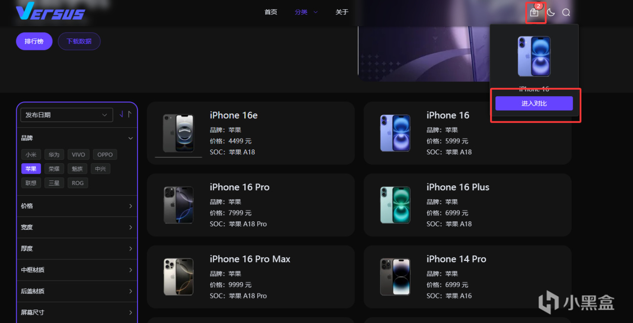 比如我想比較蘋果16與15,只需勾選後在右上方點擊對比(也可以更多一起對比),就可以獲得詳細對比圖,且免費下載
