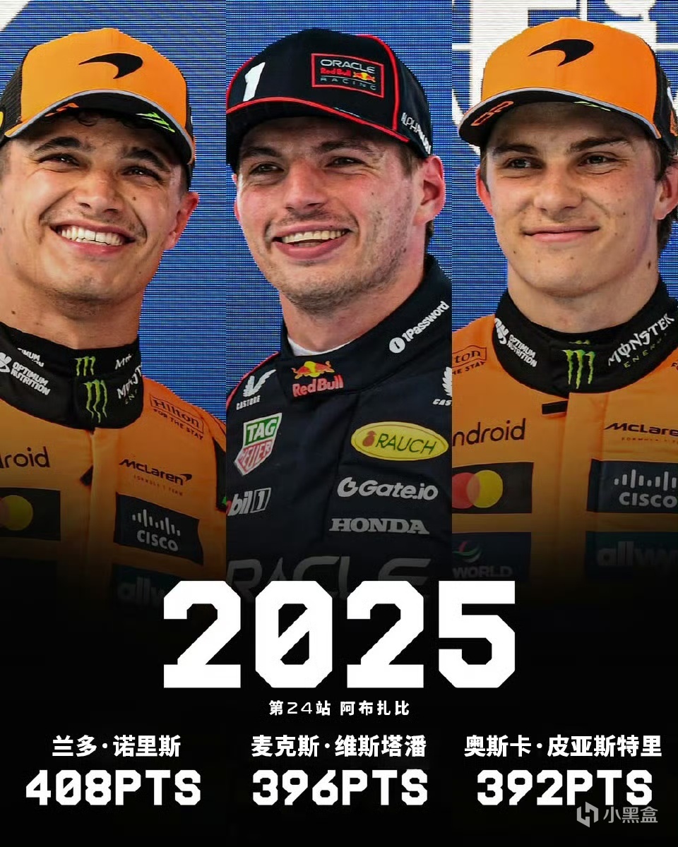 上一站卡塔尔站结束,维斯塔潘夺冠,与诺里斯的差距缩小到12分,
