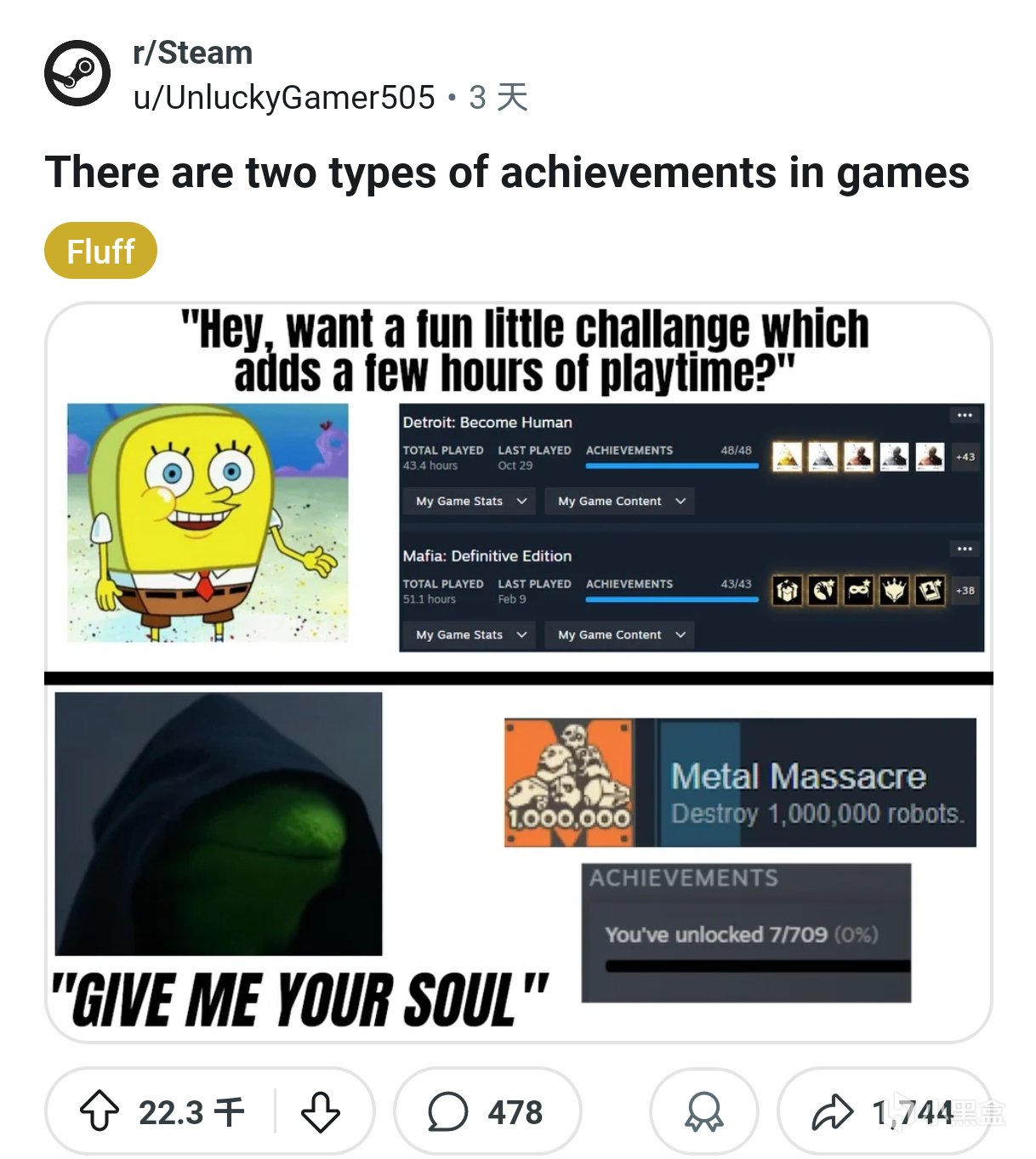 或许有着更清晰的目标,从游戏开始就在为全成就铺垫了,就算第一遍不能全成绩,为了全成就的他们也会游玩第二遍第三遍,跑遍地图的每一个角落,对成就党来说,攻略交流、互刷互助,成就列表或许是社交名片,也或许是对于喜爱的游戏想要拥有完美存档,有着更深层次的纪念意义