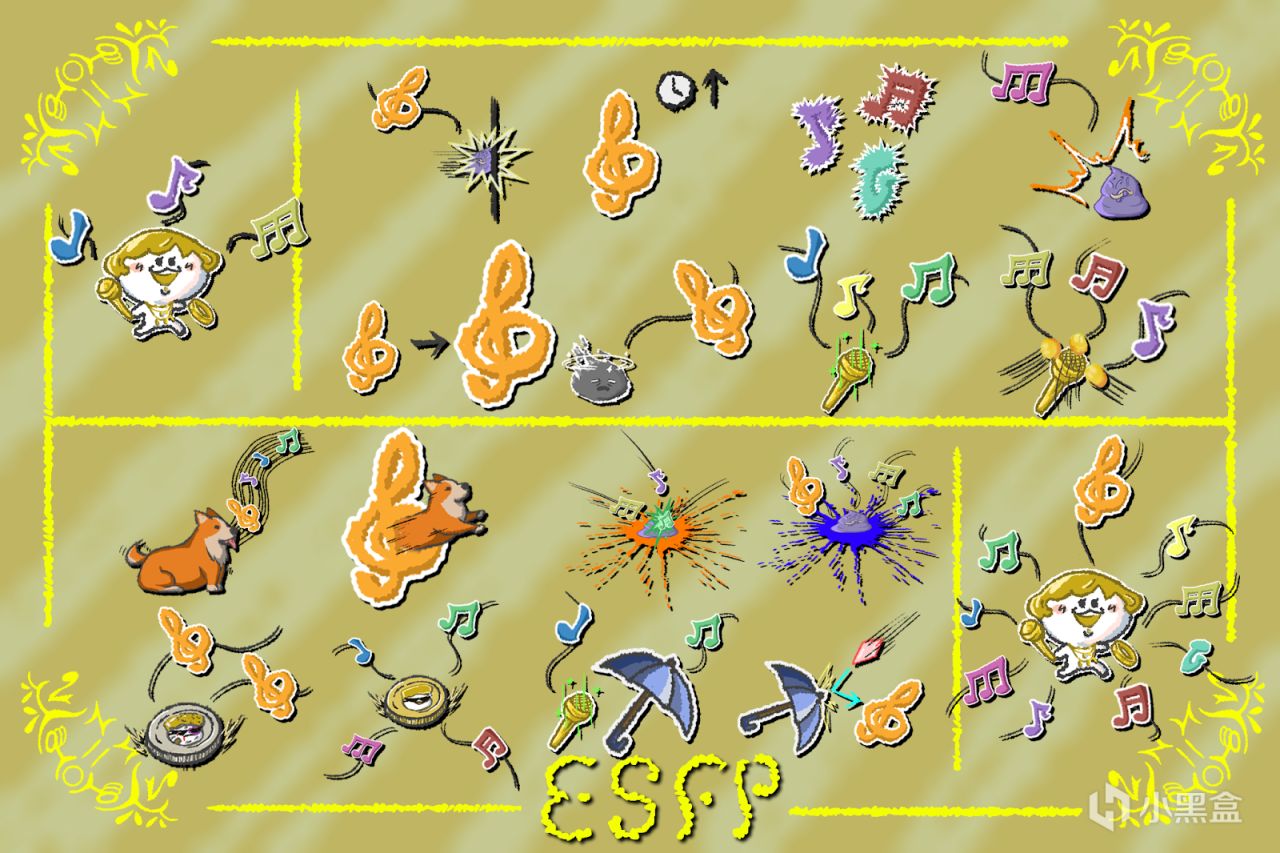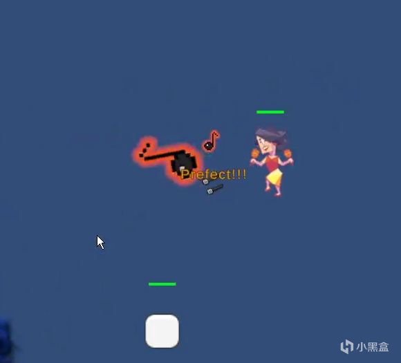 在我們最早的版本,ESFP曾經有類似於音遊的設計。玩家需要在正確的節拍按下攻擊鍵,來釋放音符。根據Miss,Good,Great和Perfect四種判定,來發射不同強度的音符。