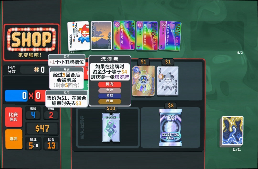 流浪者还是算了吧,我现在有$88,为了流浪者清空钱包有点不值了。况且整活需要大量重掷商店,买流浪者基本是断了后路