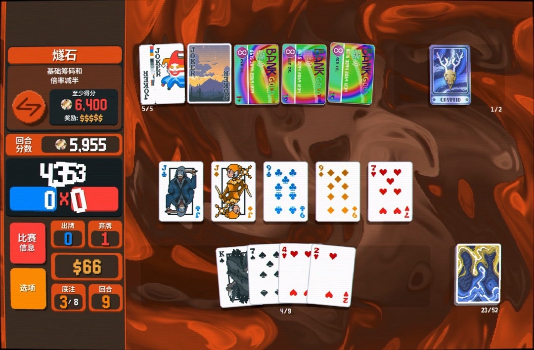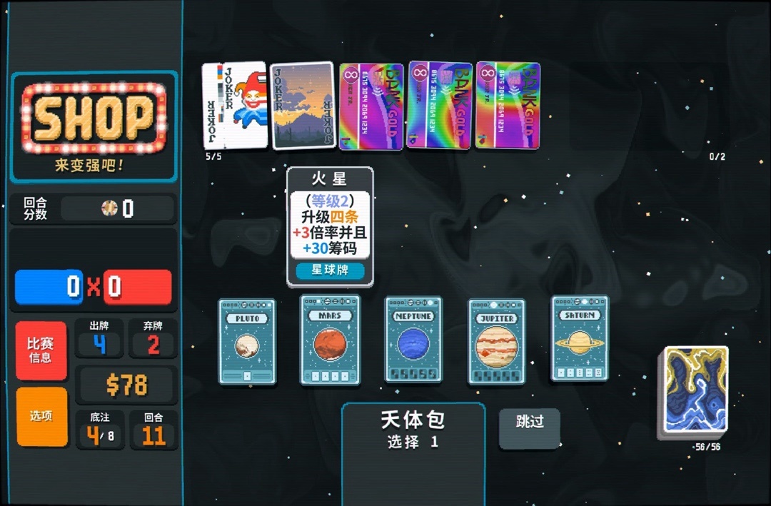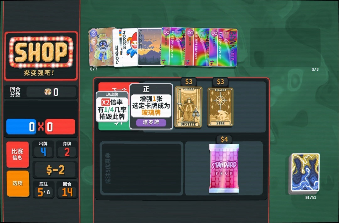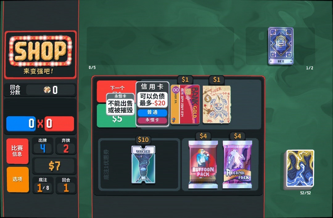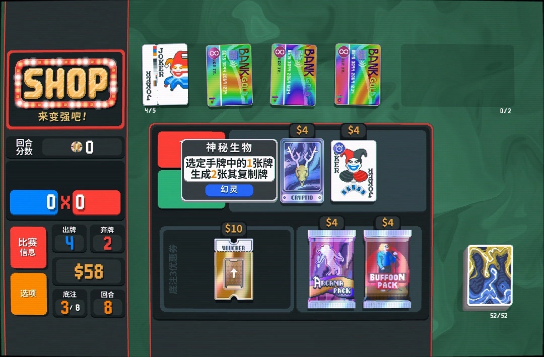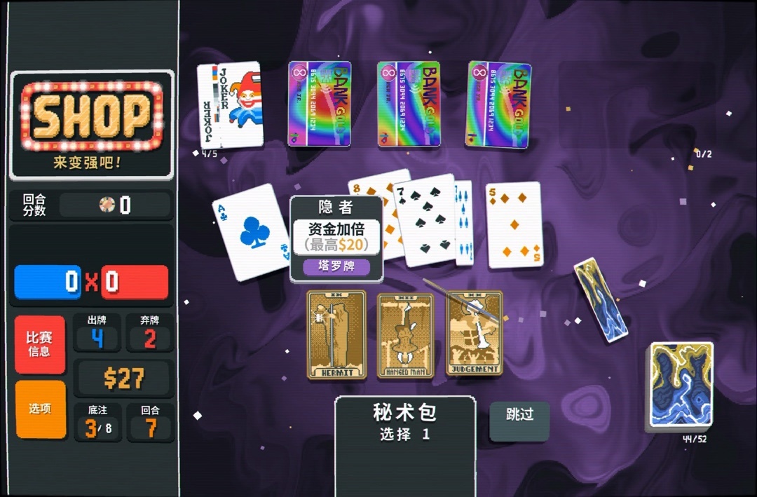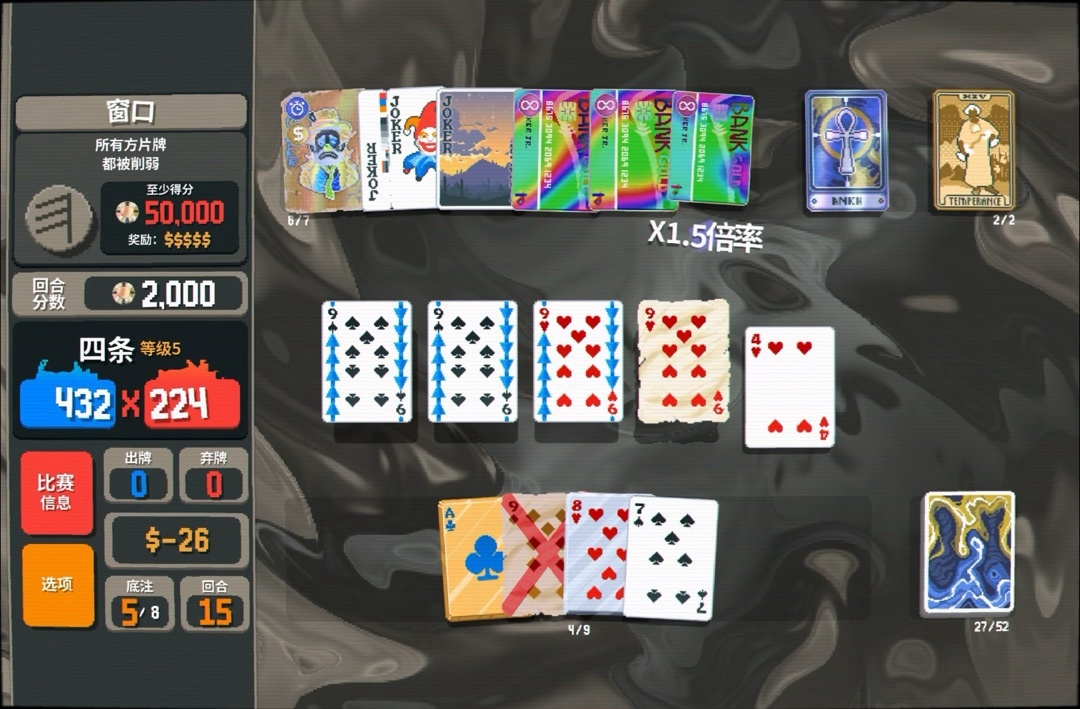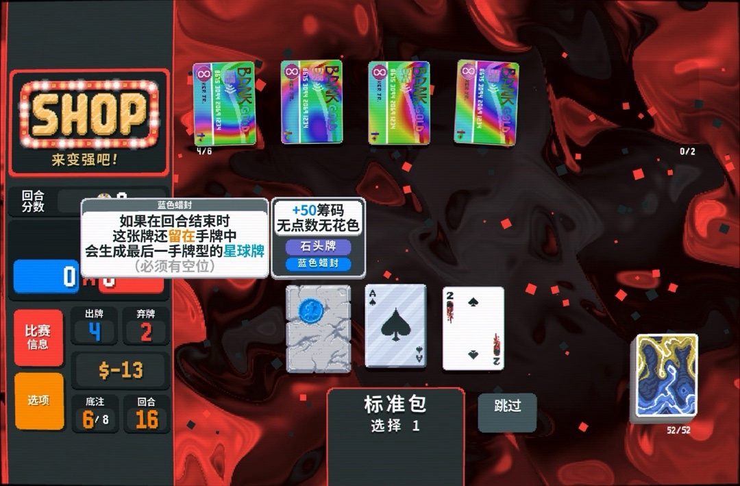 虽说现在打四条不稳定,但是由于手牌+1,打葫芦等大牌型过渡也是可以的,拿一张战车也可以暂时提供倍乘,不至于靠几张多彩信用卡裸打。