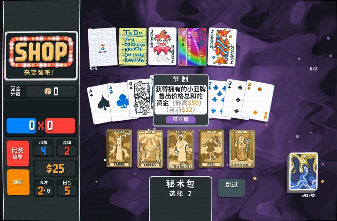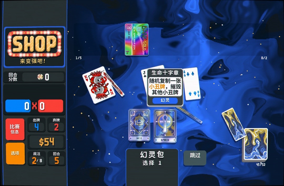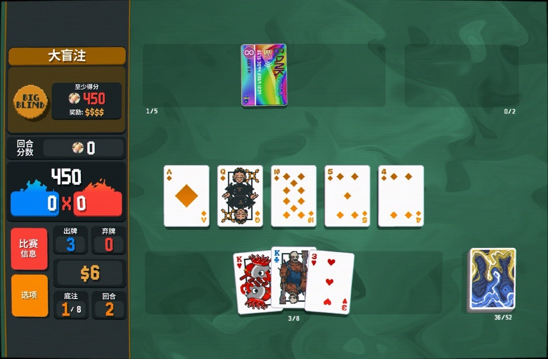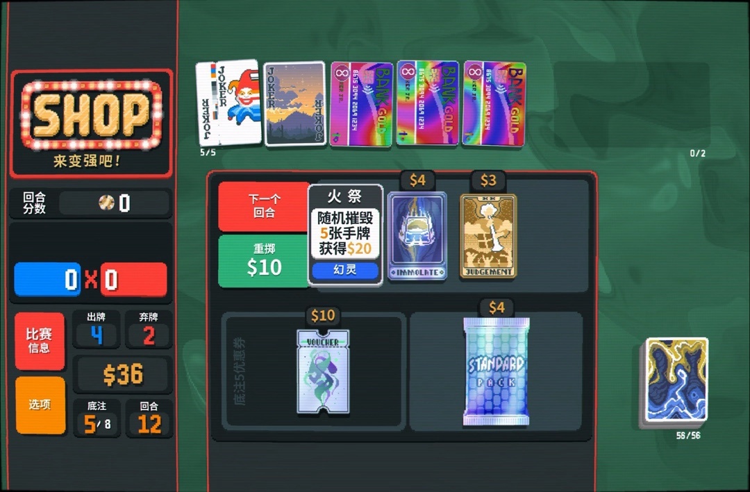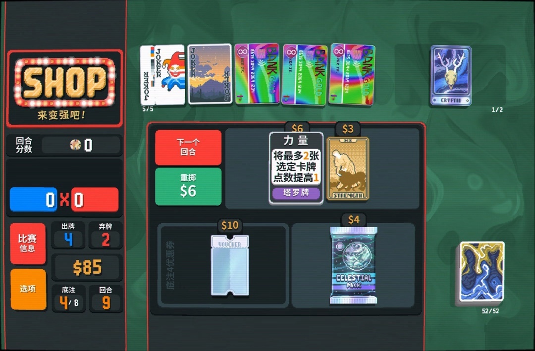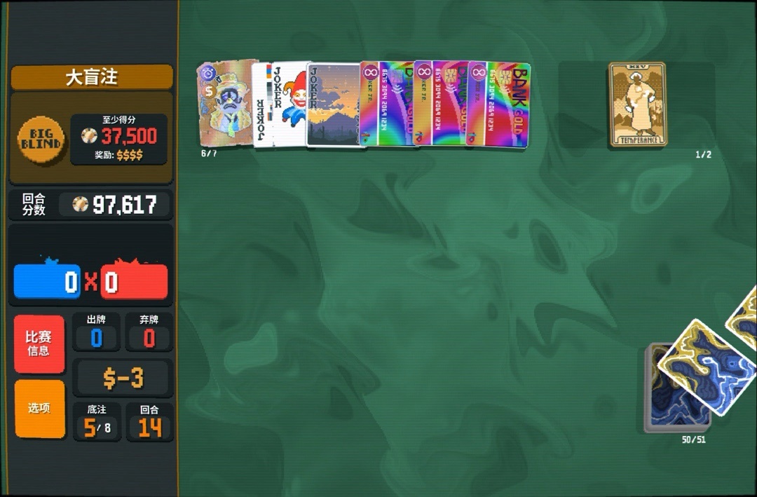 这里有个细节,为了下次乌合之众能重新再填两个小丑,就要卖掉现在留着的普通小丑。但不要全部卖掉,确保数值的情况下,进回合后保持5个小丑,这样节制能值更多钱。