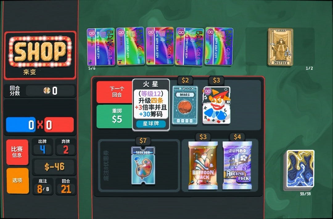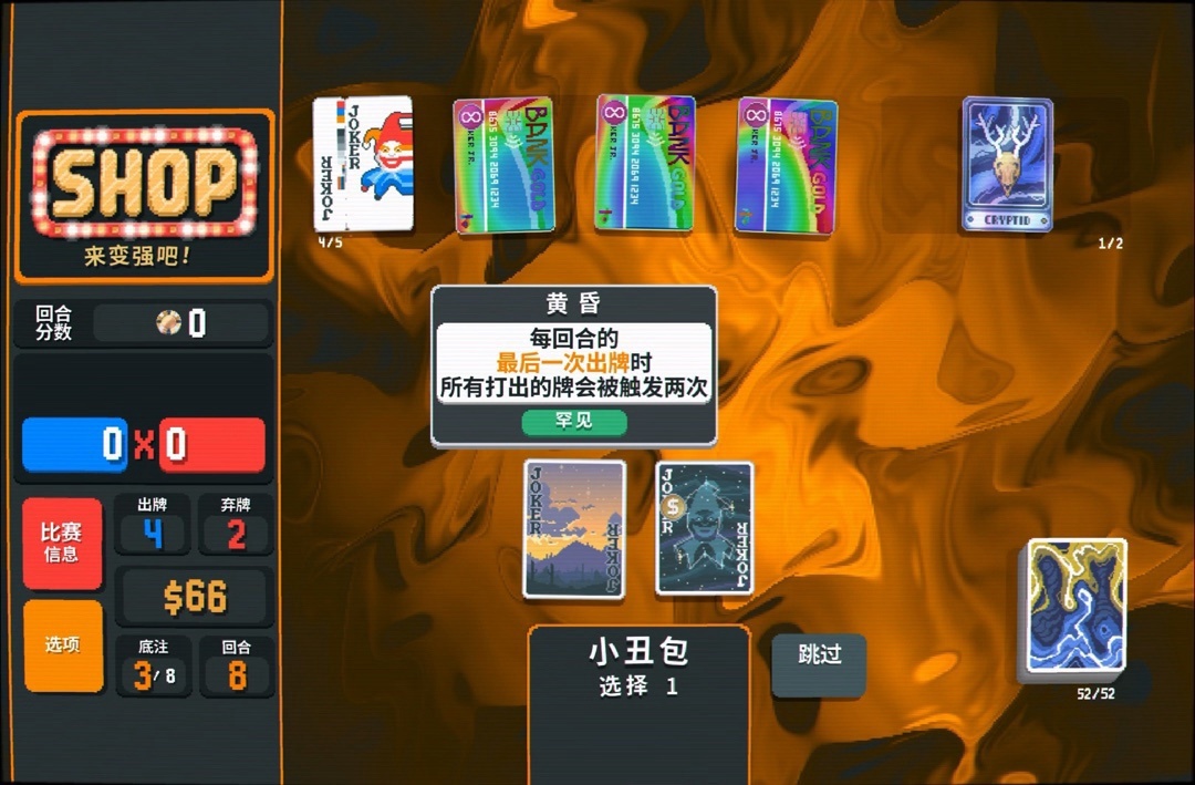 小丑包不用买了,省钱,直接上妖法硬打大盲注,有多彩×1.5倍率的情况下,同花可以一次通关。