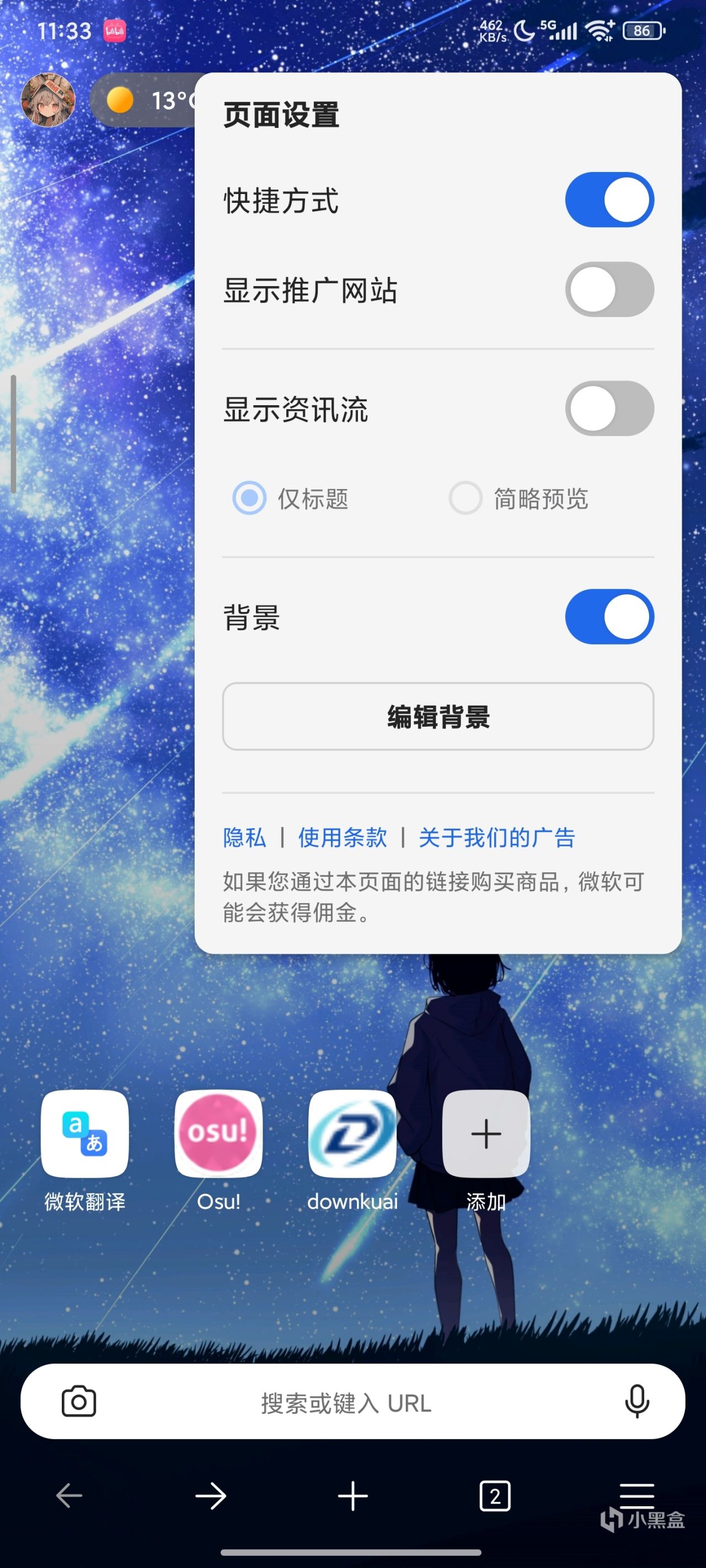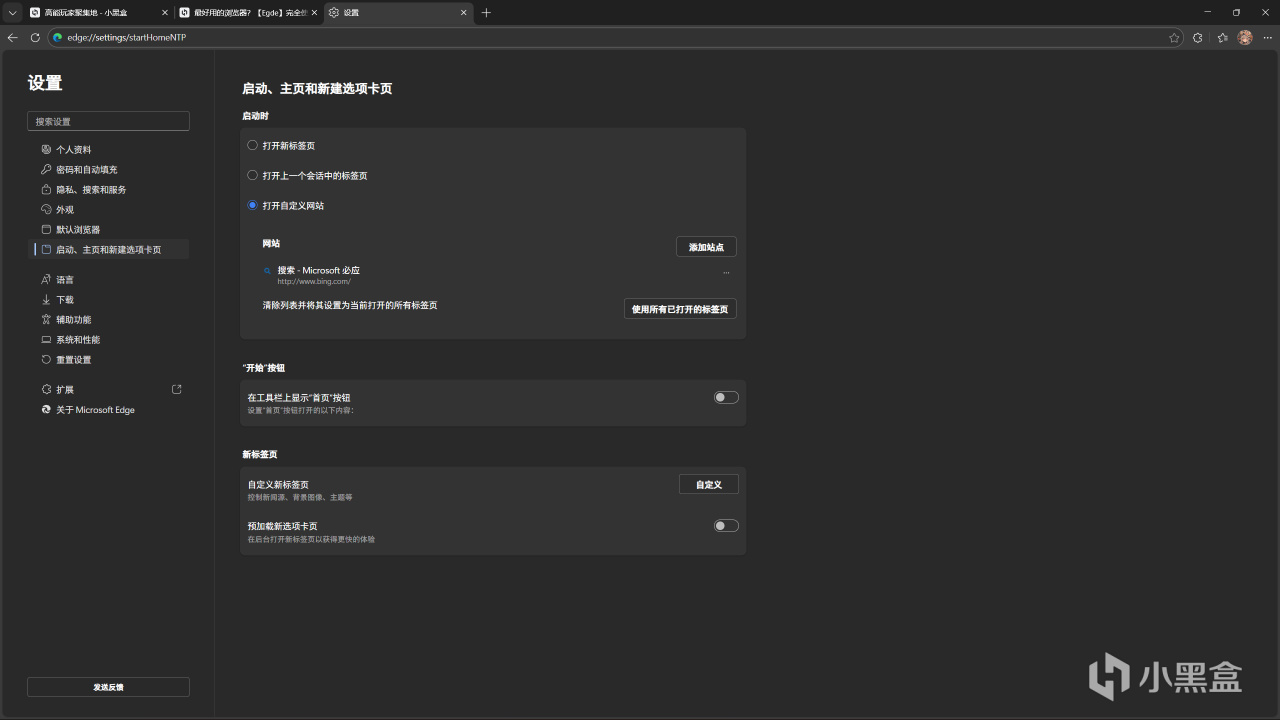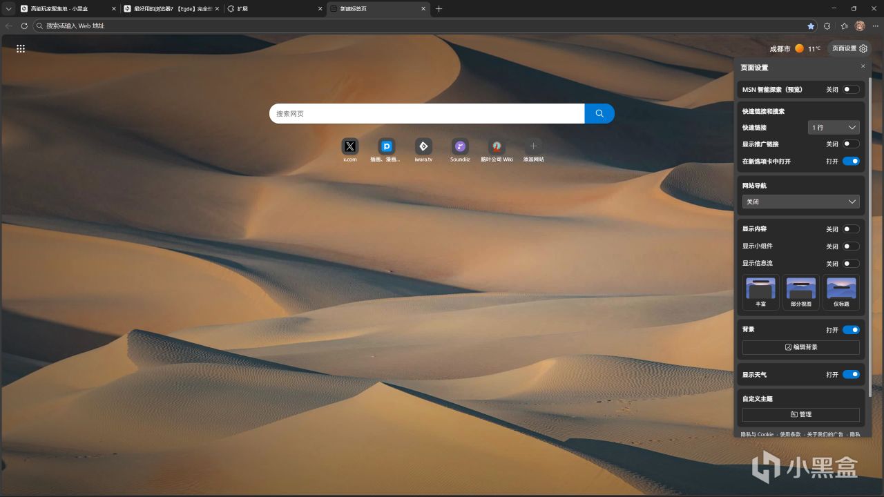 到这里基础设置就结束了,你可以尝试关闭Edge之后再重新启动,会发现到了一个新页面